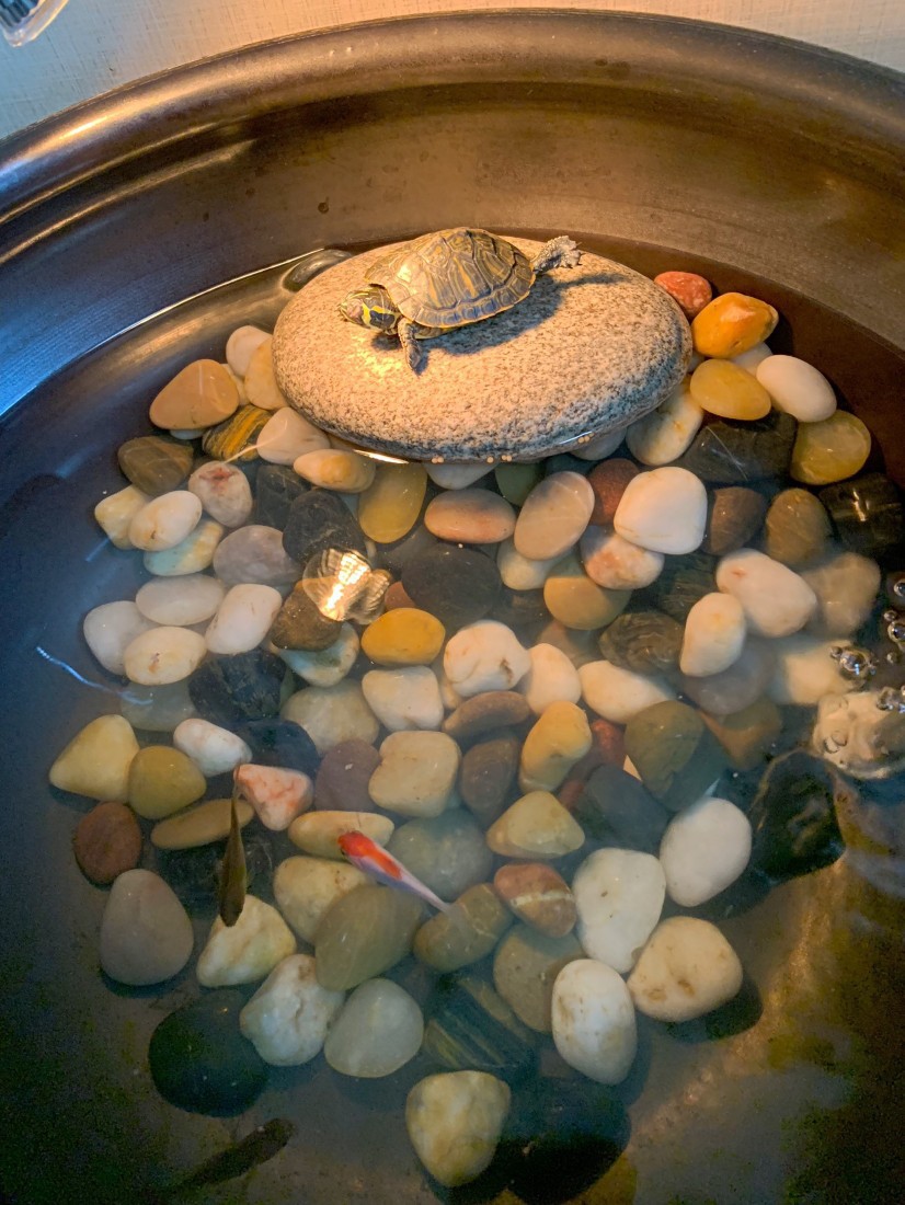 자연 거북이 순석 돌 등반 애완 동물 등반 평평한 조약돌 거북이 탱크 떠있는 섬 순석 물고기 탱크 탈출 구멍