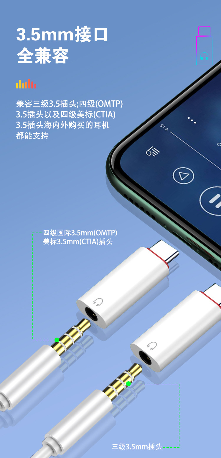 TYPEC-3.5 어댑터 디지털 오디오 컨버터 애플 16 어댑터 전화 헤드셋 어댑터