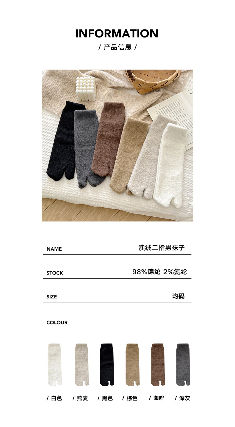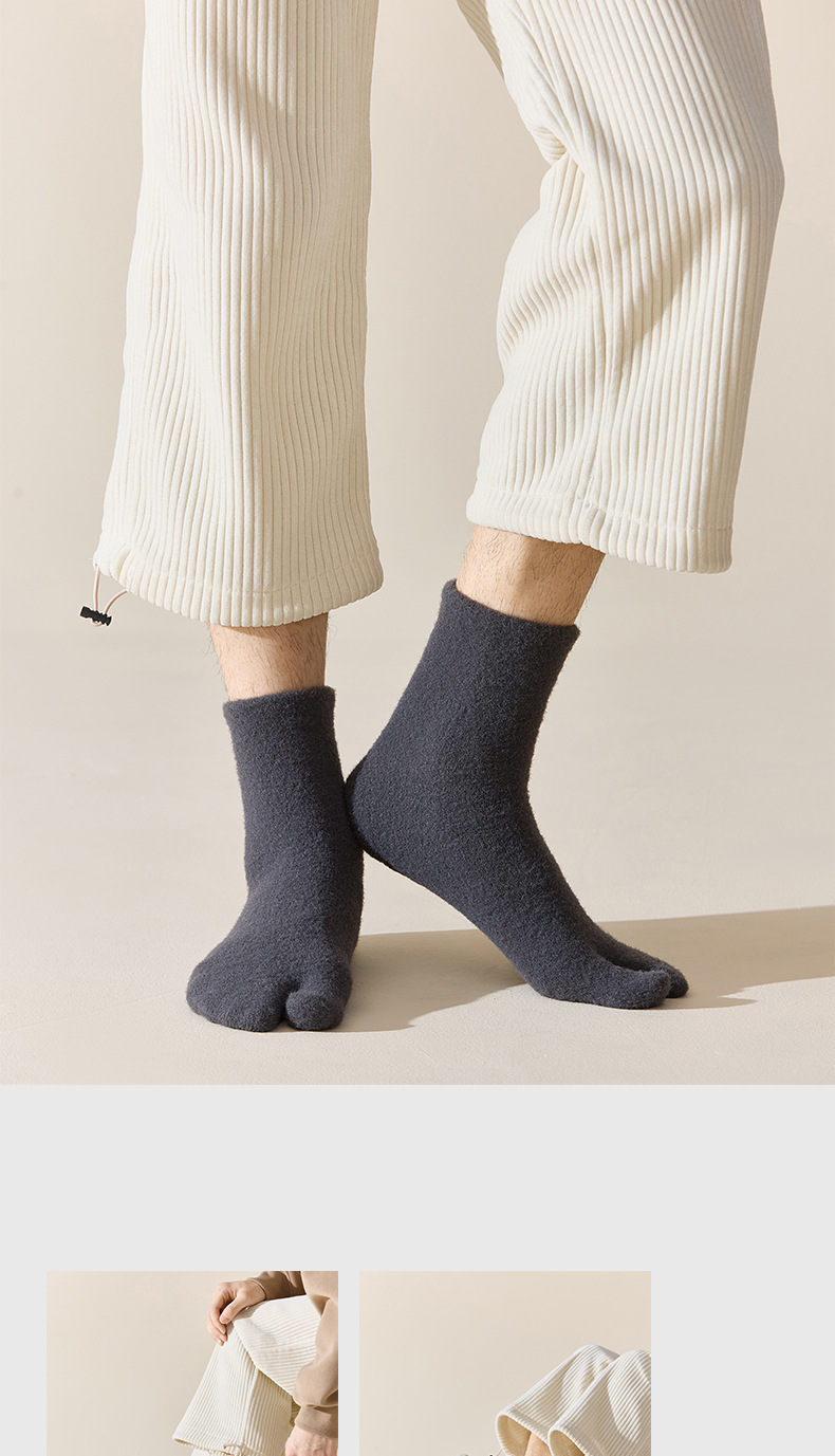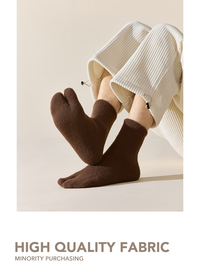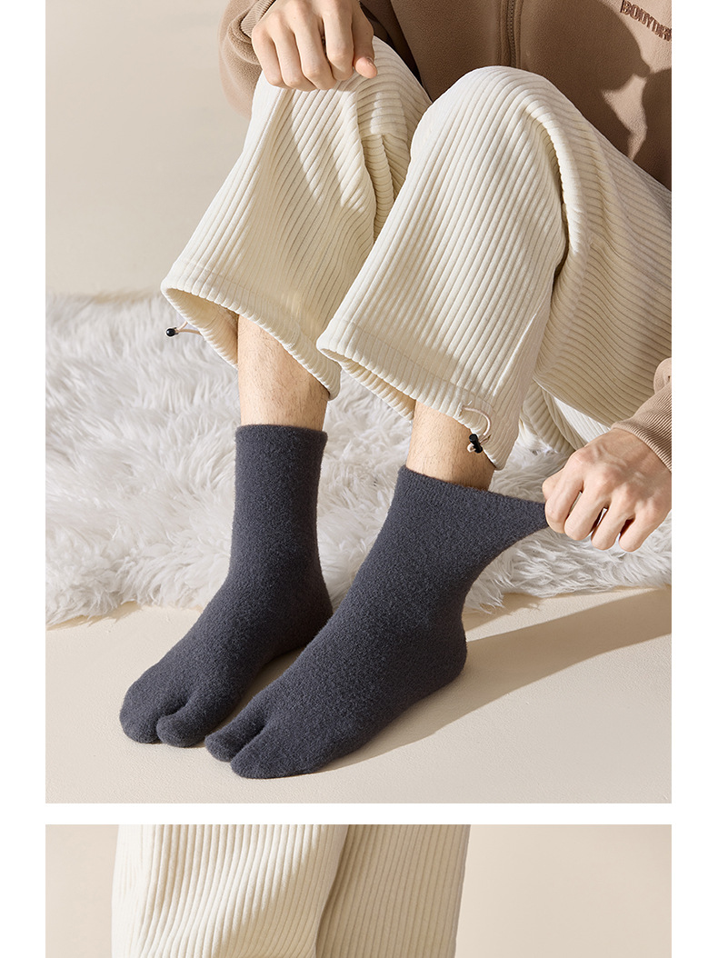 두 개의 발가락 양말 남자 중간 길이 양말 겨울 호주 벨벳 뼈없는 양말 엄지 쪼개진 발가락 남자 양말 기모 따뜻한 방한 두껍게
