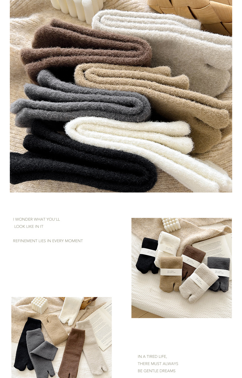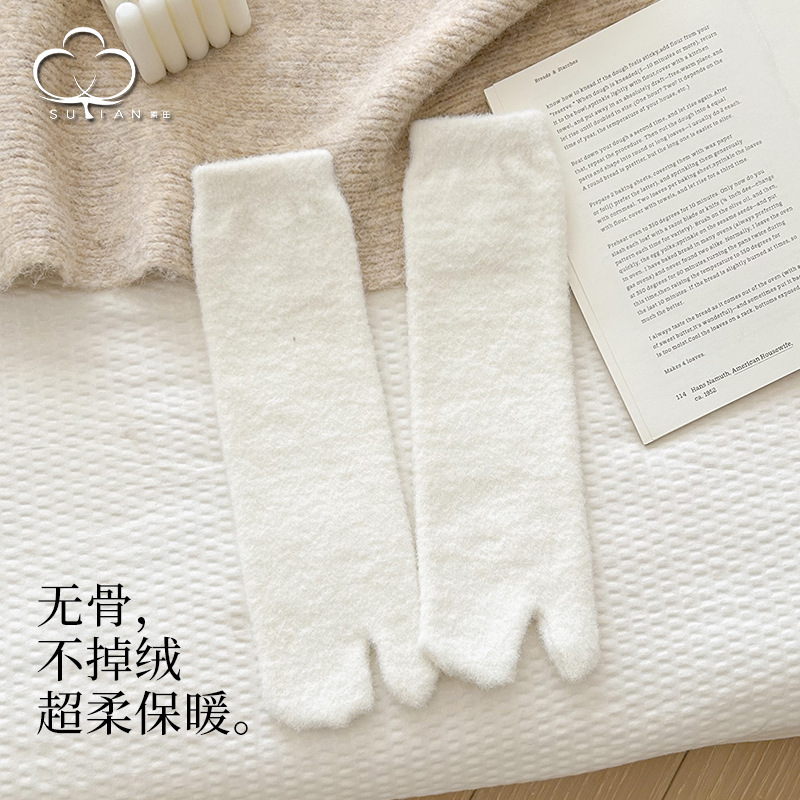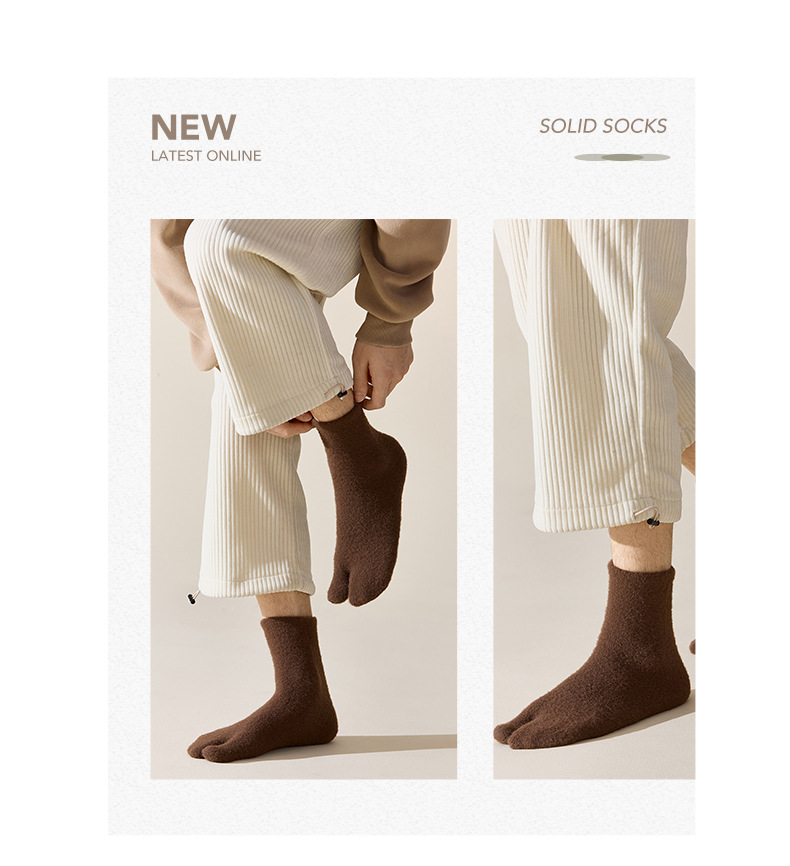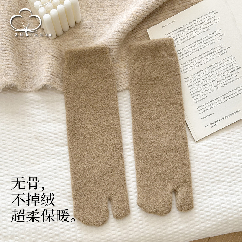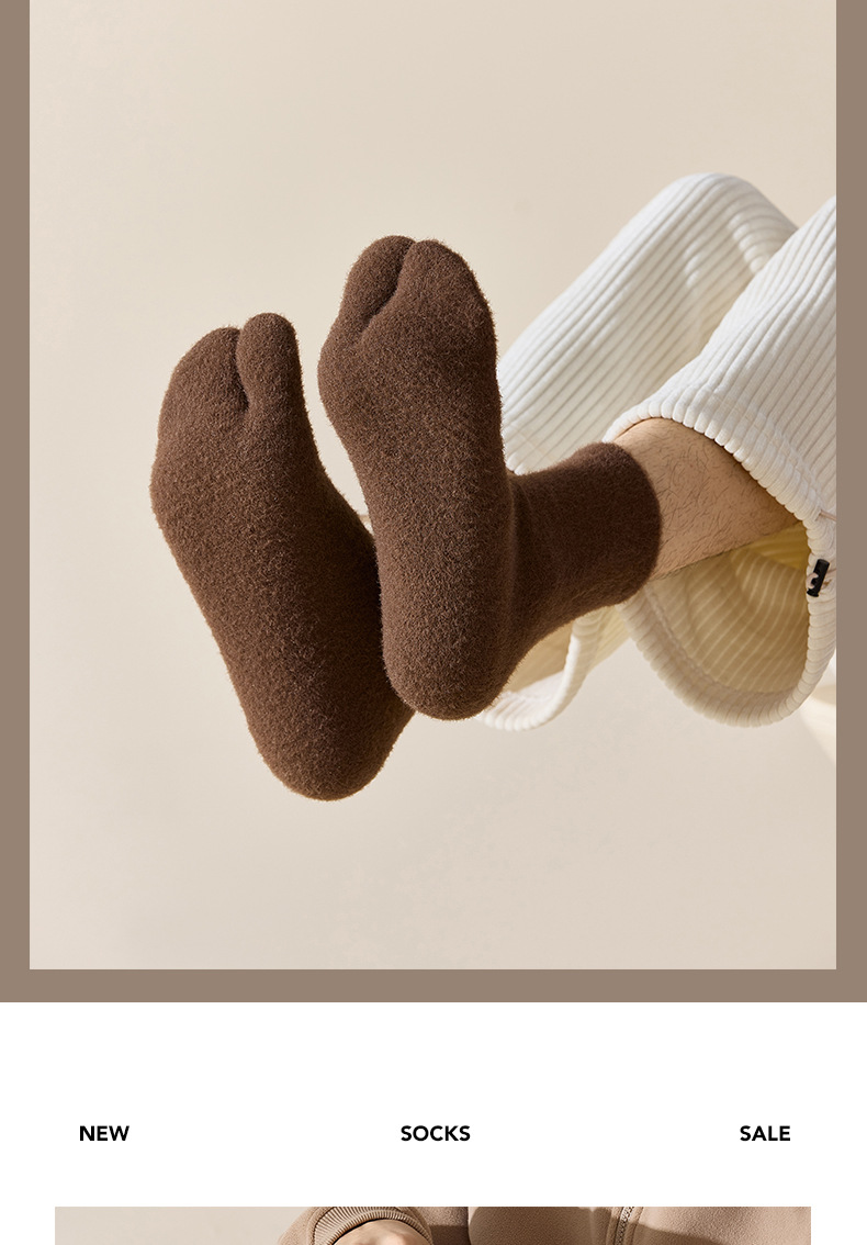 두 개의 발가락 양말 남자 중간 길이 양말 겨울 호주 벨벳 뼈없는 양말 엄지 쪼개진 발가락 남자 양말 기모 따뜻한 방한 두껍게