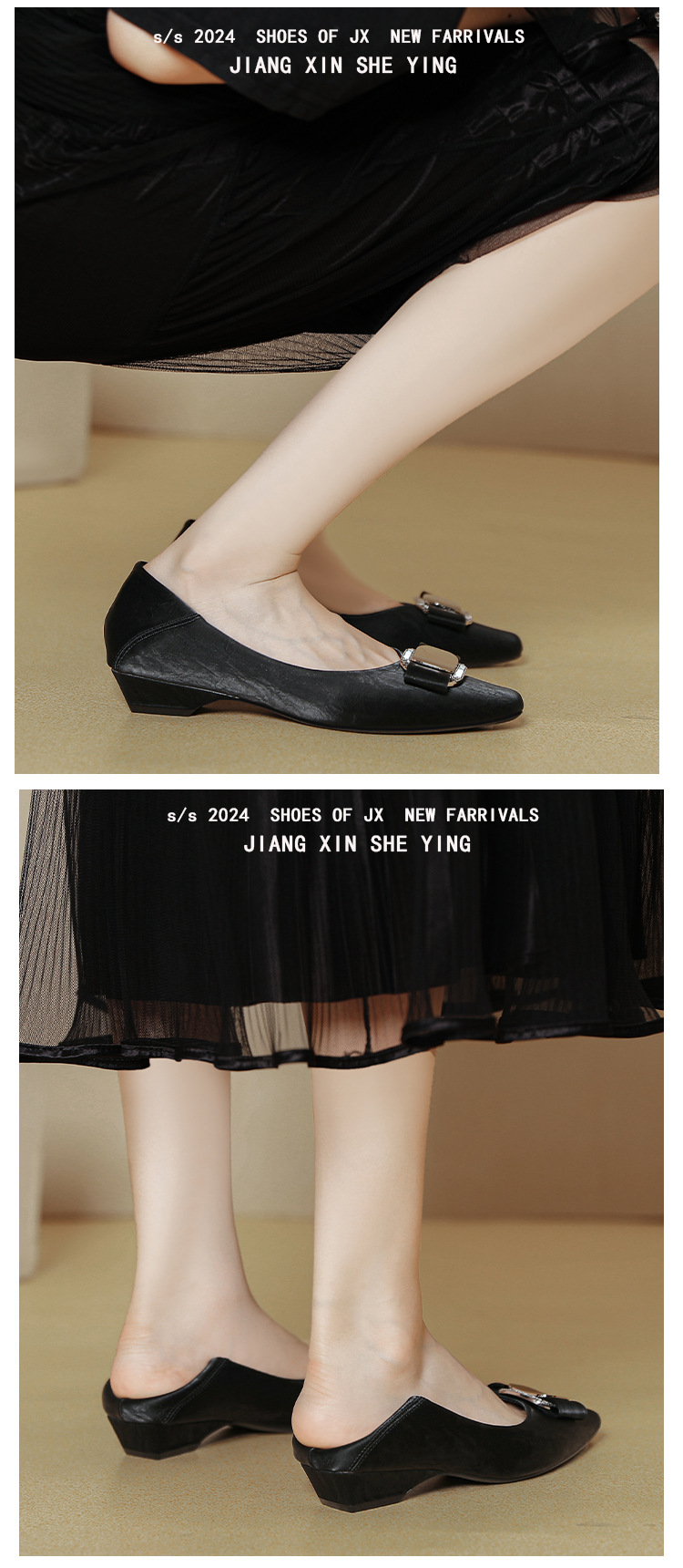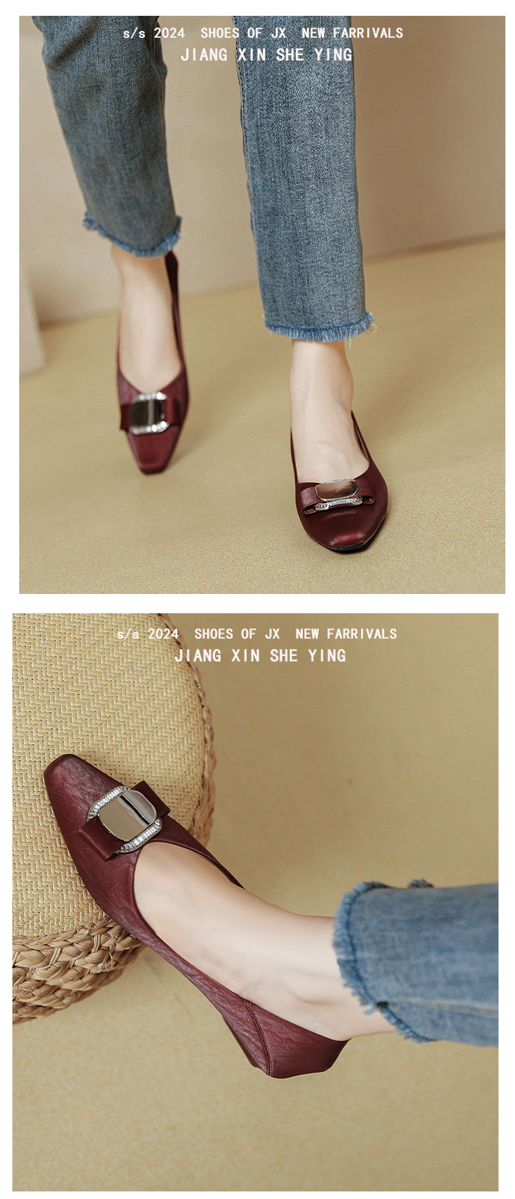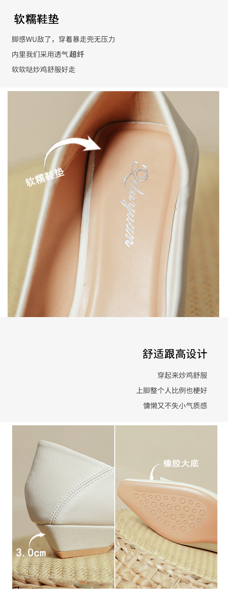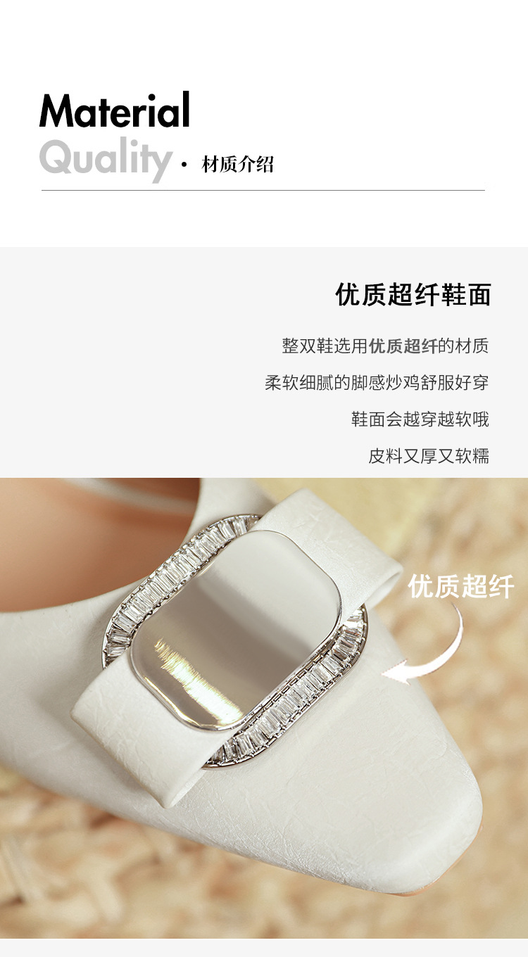프랑스 로우 힐 얕은 입 신발 부드러운 가죽 2024 새로운 Huizhou 여성 신발 봄과 가을은 피곤하지 않은 발 사각형 발가락 두꺼운 뒤꿈치 신발을 착용하십시오.스토어 가기