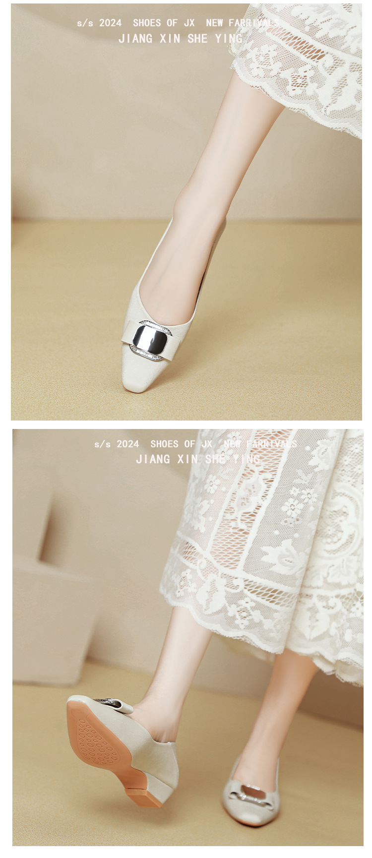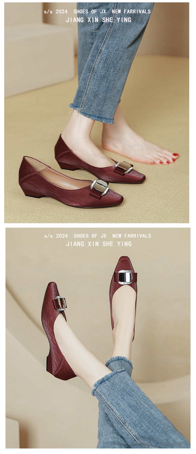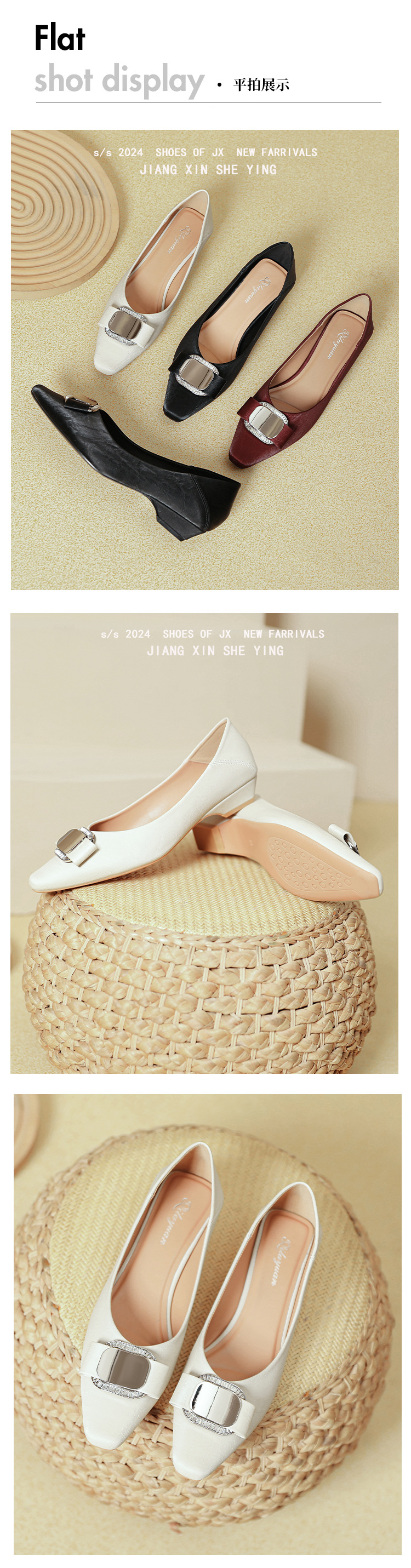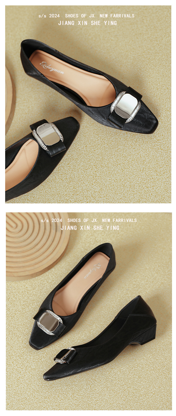 프랑스 로우 힐 얕은 입 신발 부드러운 가죽 2024 새로운 Huizhou 여성 신발 봄과 가을은 피곤하지 않은 발 사각형 발가락 두꺼운 뒤꿈치 신발을 착용하십시오.스토어 가기