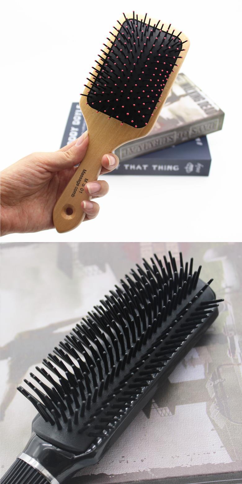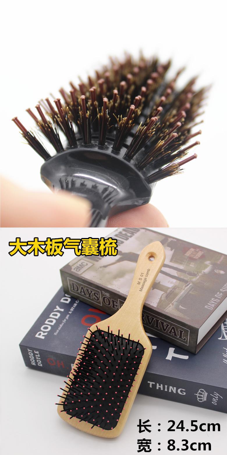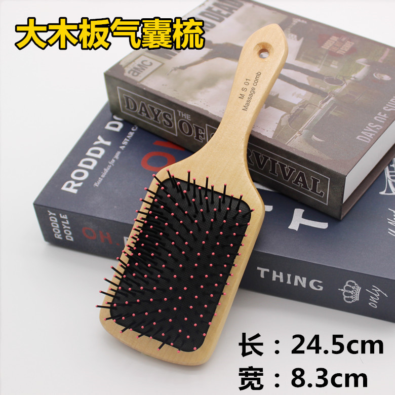헤어 나무 손잡이 마사지 에어백 보드 빗 배치 판매 곱슬 머리 공기 쿠션 9 행 빗 큰 뒤 오일 헤드 강모 립 빗스토어 가기