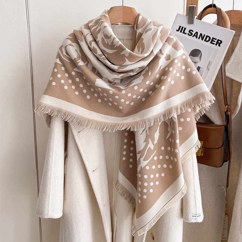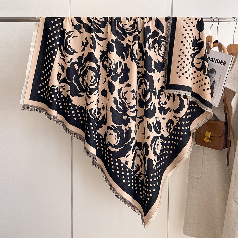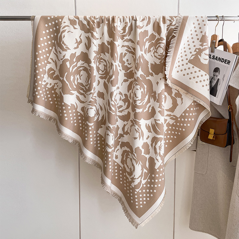 가을과 겨울 웨이브 도트 로즈 패션 올 매치 하이 엔드 여성 캐시미어 따뜻한 스퀘어 웨스턴 스타일 양면 에어컨 목도리스토어 가기