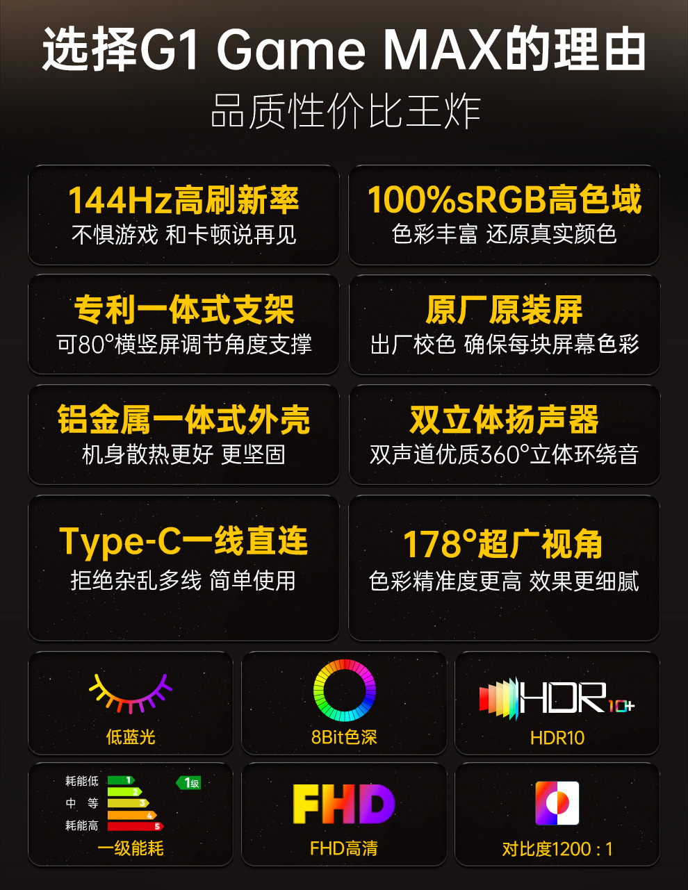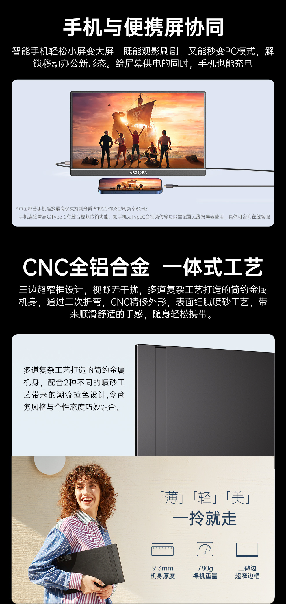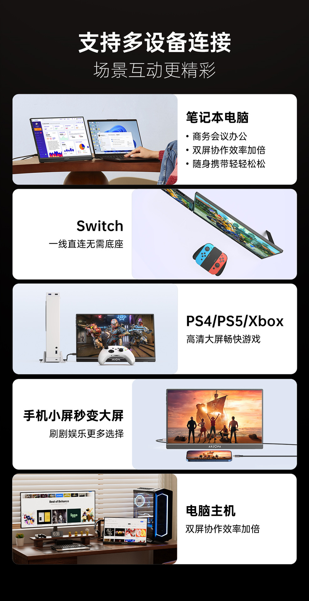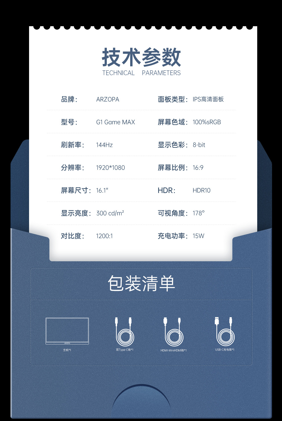 ARZOPA16.1 인치 144HZ 높은 색상 영역 휴대용 디스플레이 IPS 화면 노트북 휴대 전화 하위 화면