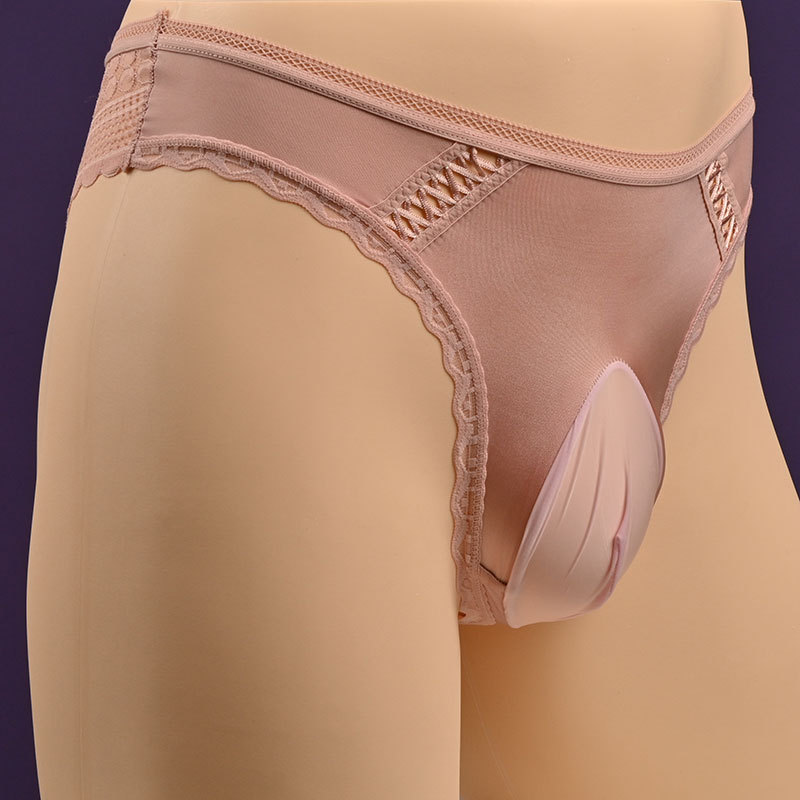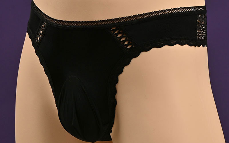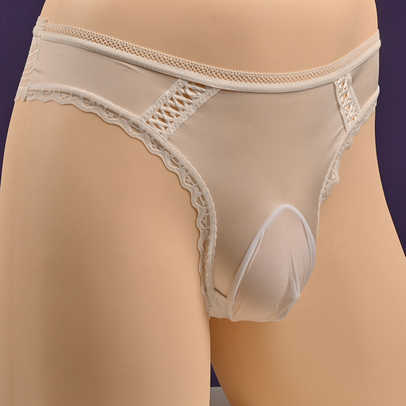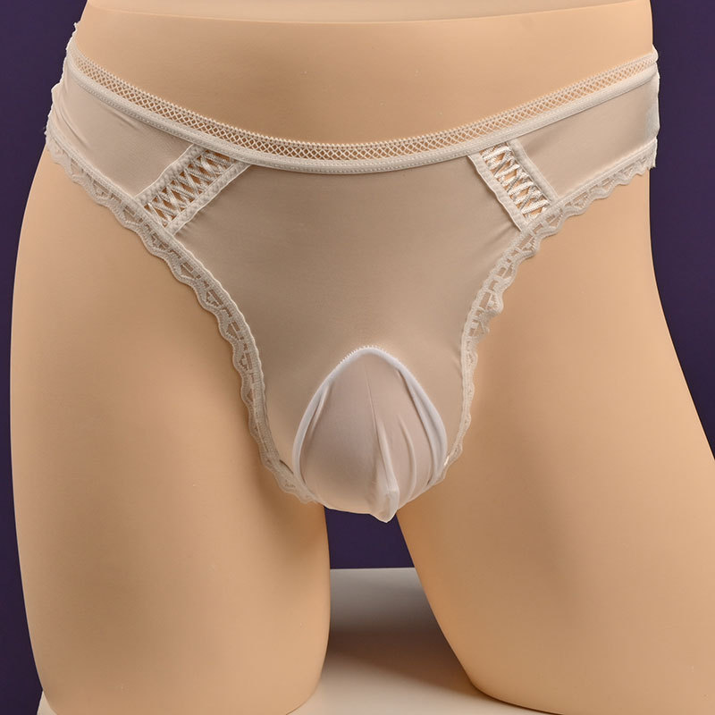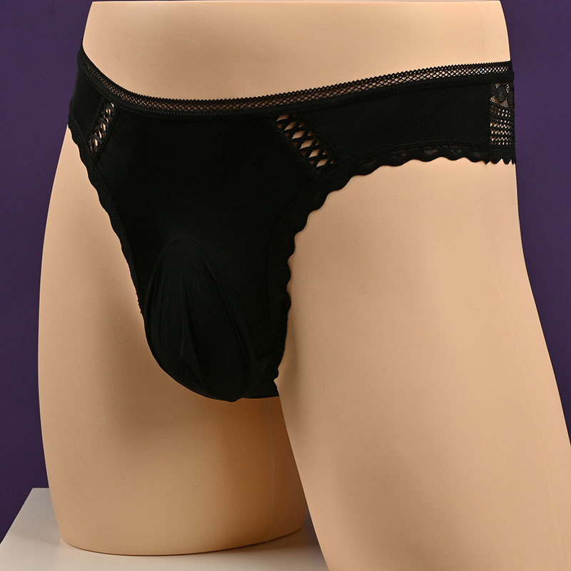 남성용 섹시한 플러스 사이즈 광택 섹시한 T 자형 공작 레이스 통기성 인형 속옷 실키 아이스 실크 브리프
