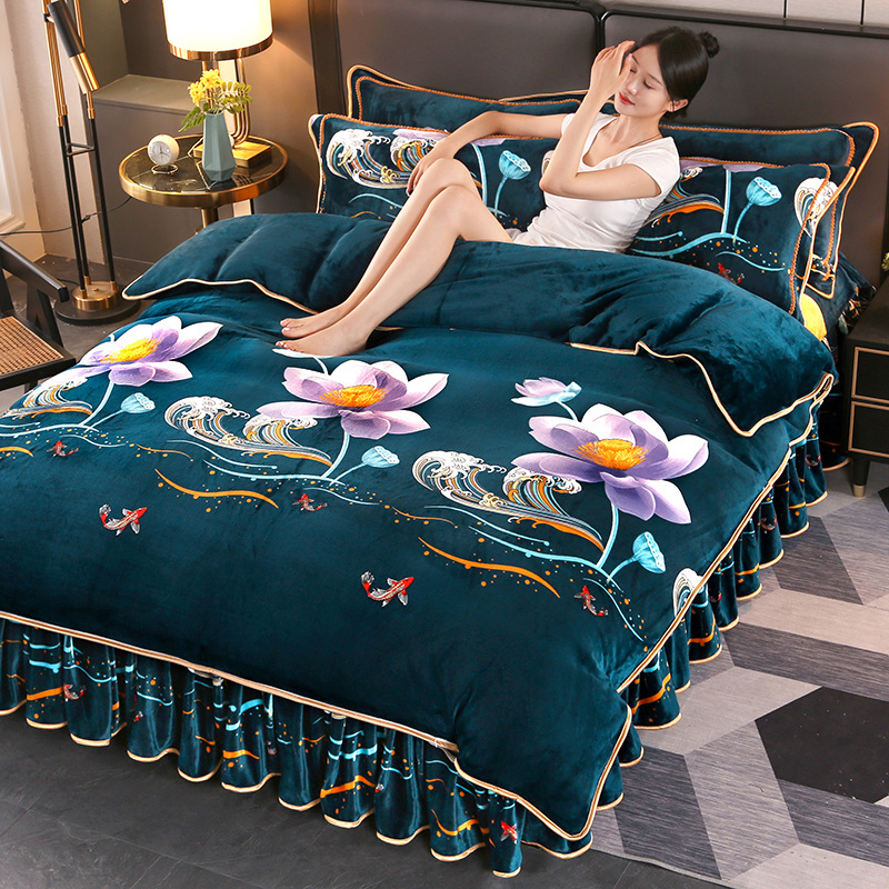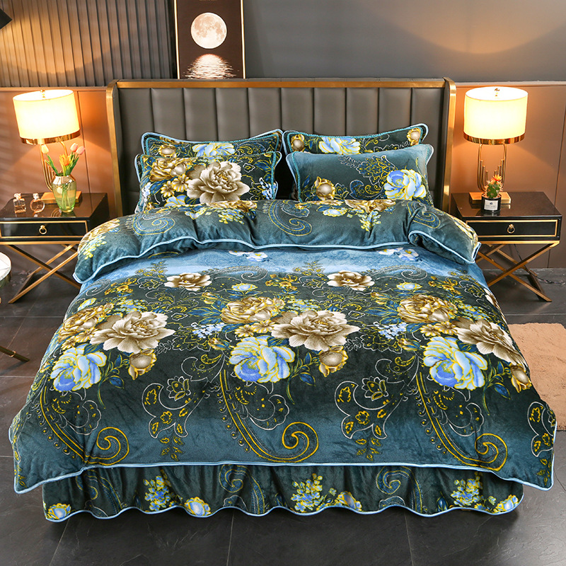 2024 고급 새로운 150g 우유 인쇄 Faleinel 크리스탈 골드 밍크 침실 4 피스 침대 3 피스 세트스토어 가기
