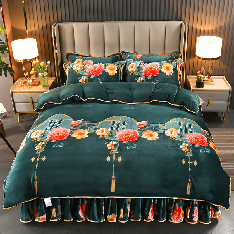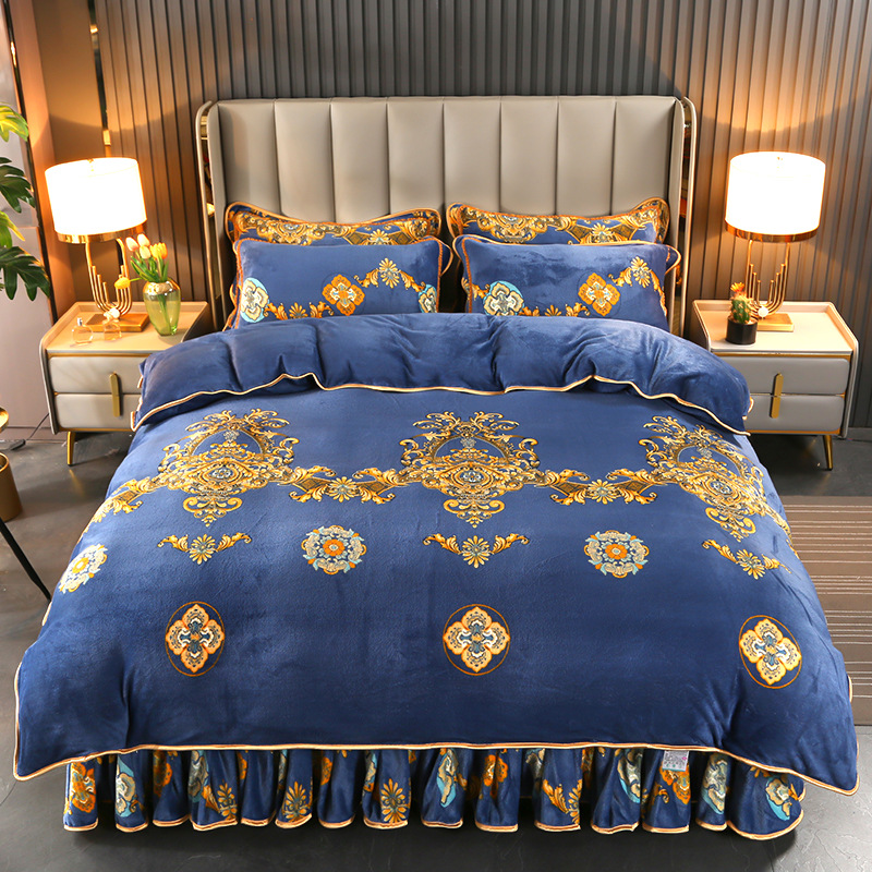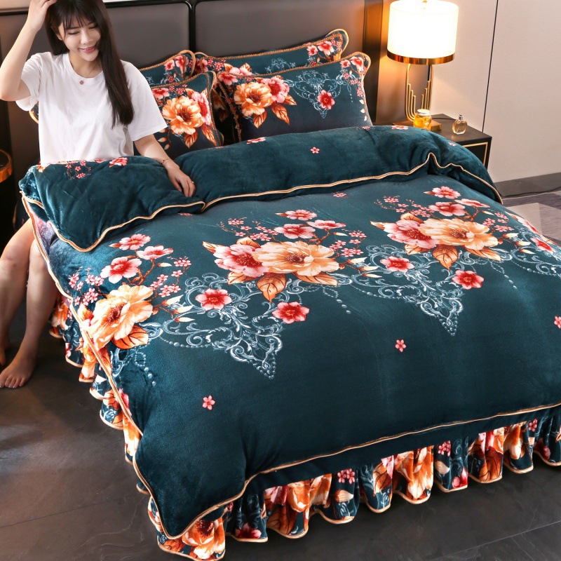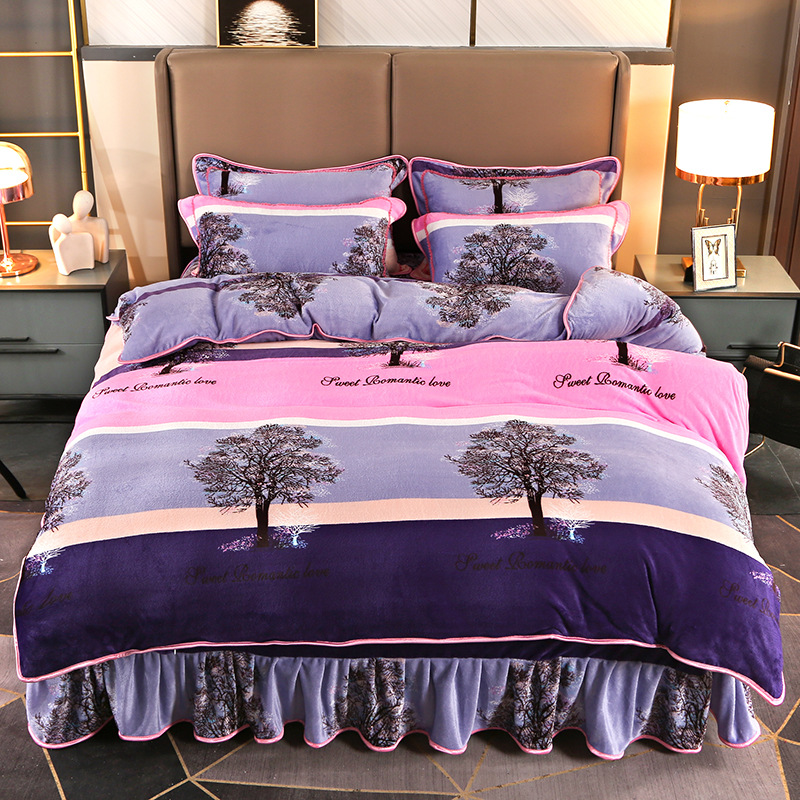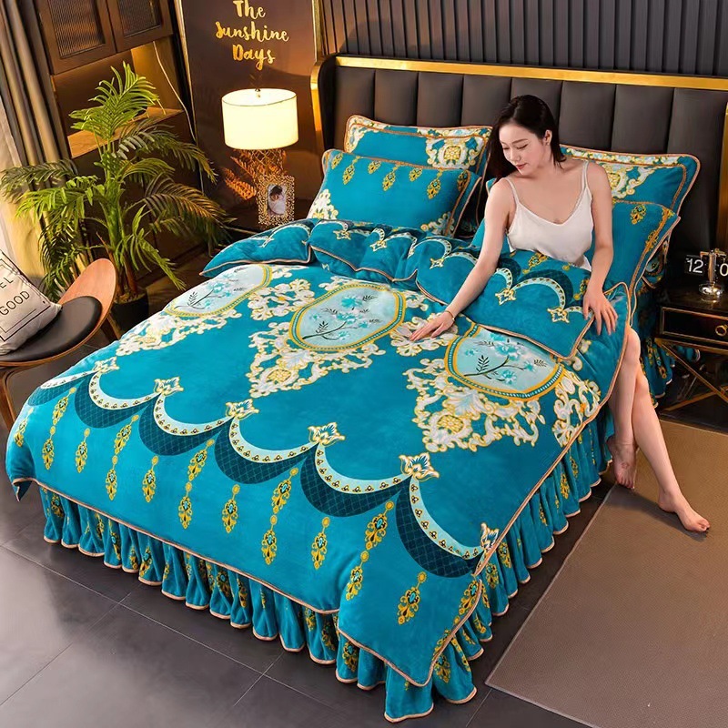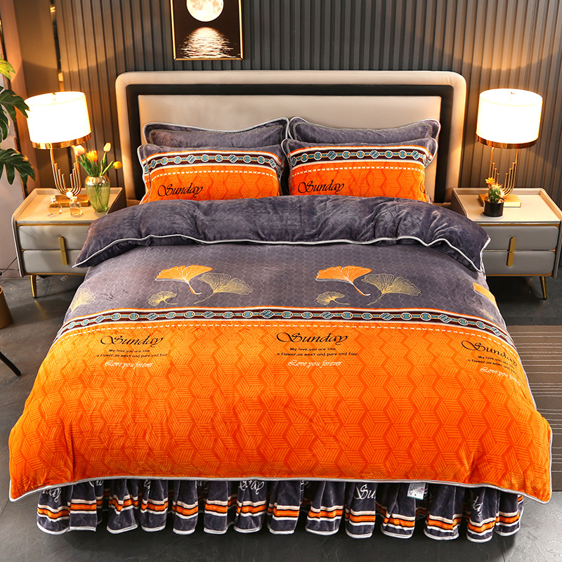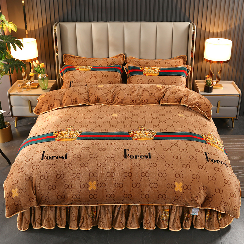 2024 고급 새로운 150g 우유 인쇄 Faleinel 크리스탈 골드 밍크 침실 4 피스 침대 3 피스 세트