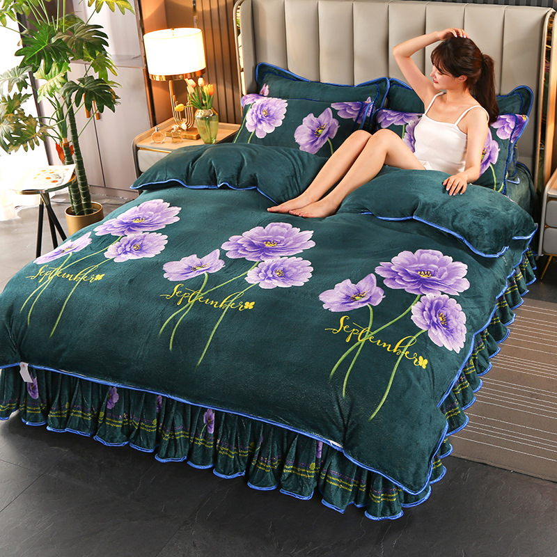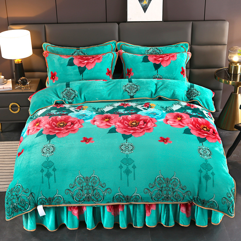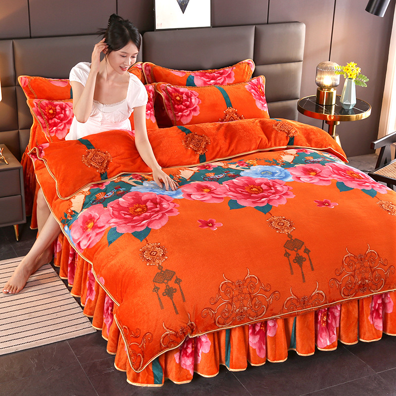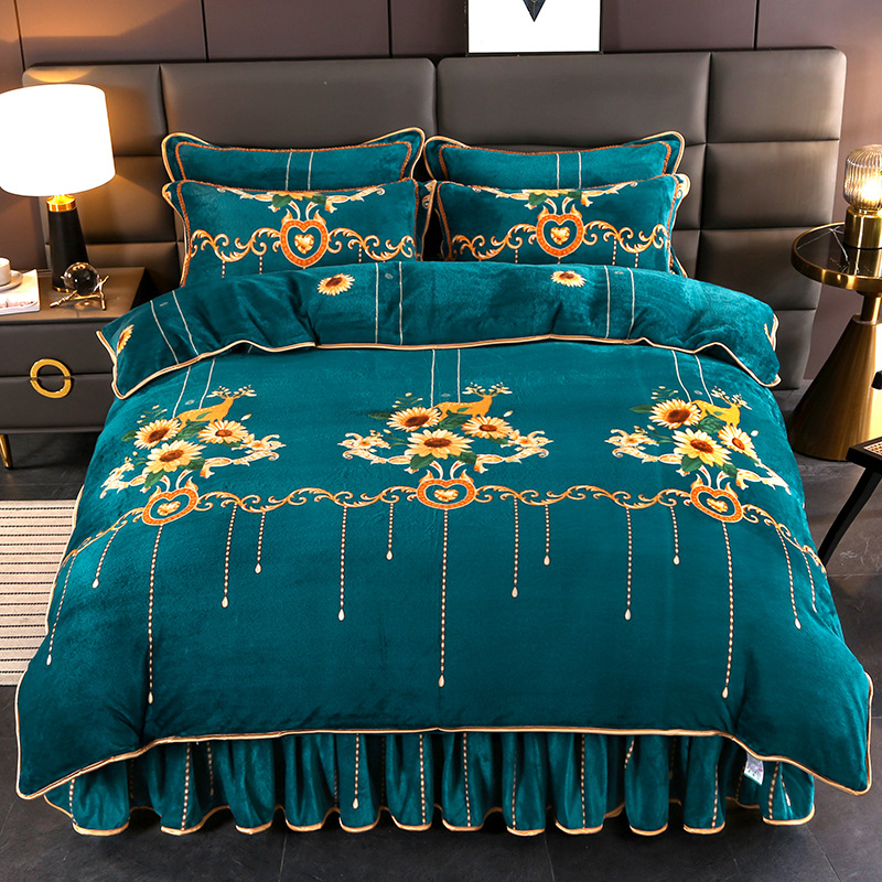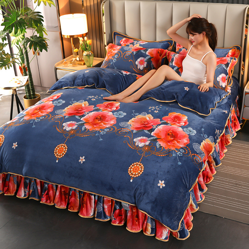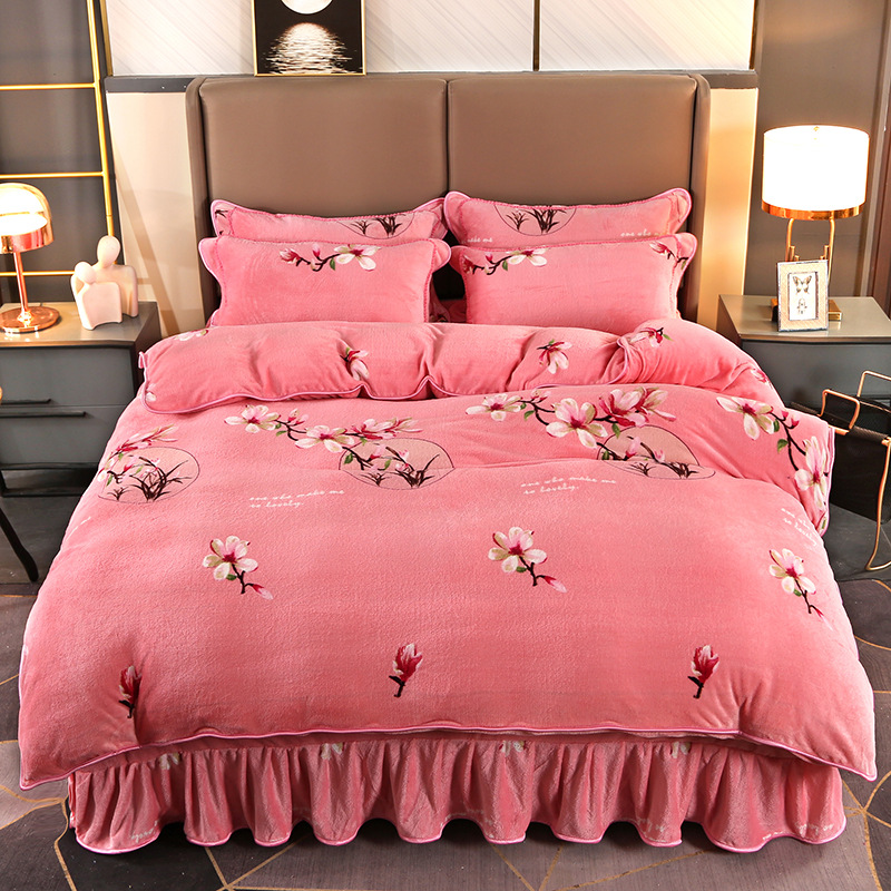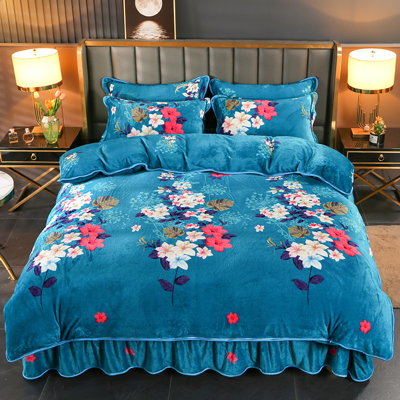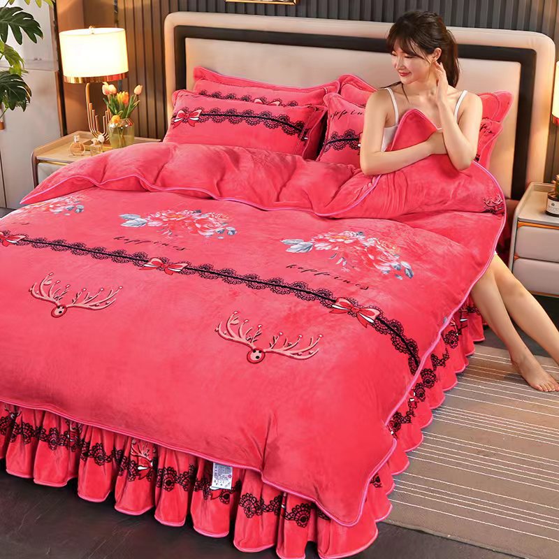 2024 고급 새로운 150g 우유 인쇄 Faleinel 크리스탈 골드 밍크 침실 4 피스 침대 3 피스 세트