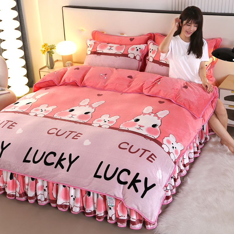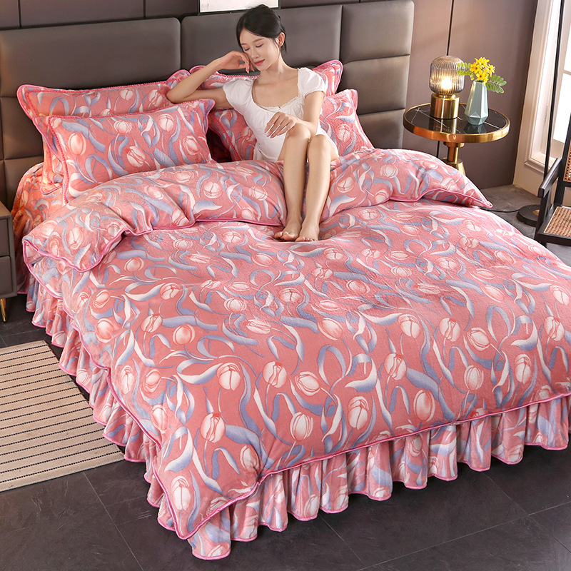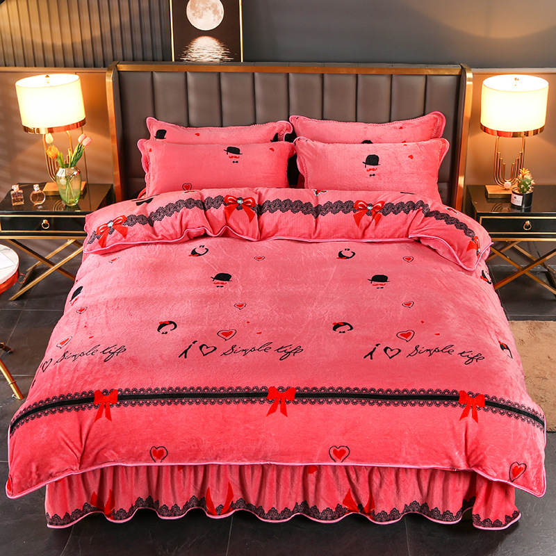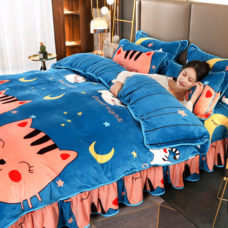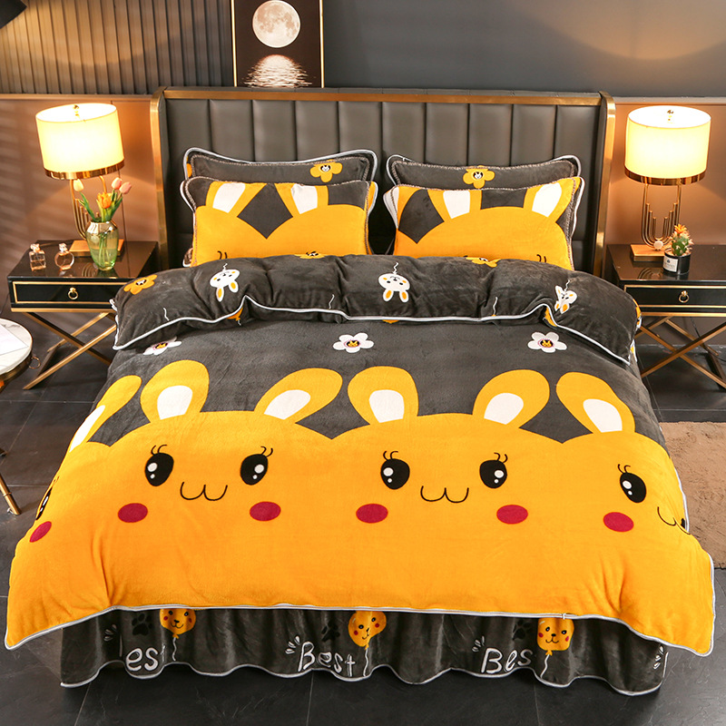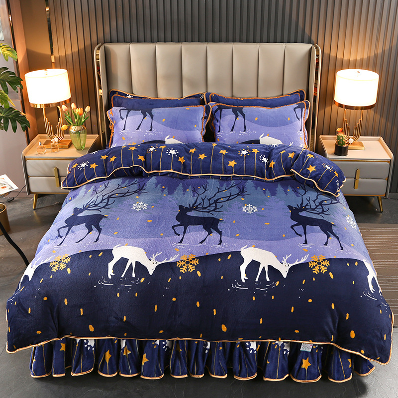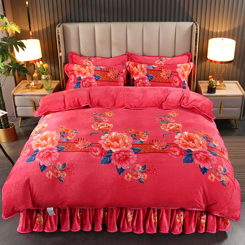 2024 고급 새로운 150g 우유 인쇄 Faleinel 크리스탈 골드 밍크 침실 4 피스 침대 3 피스 세트