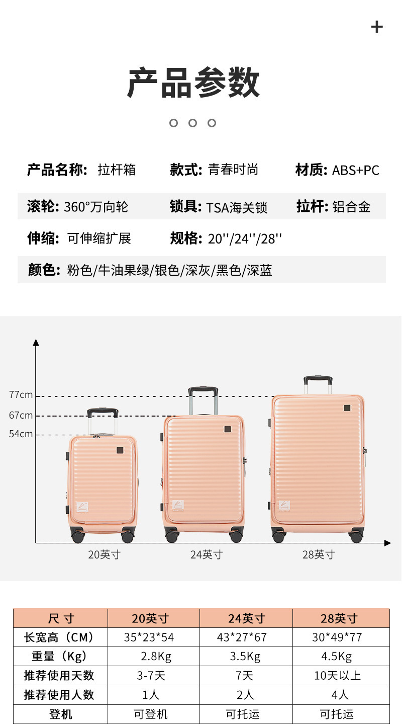 제조업체 맞춤형 전면 개방형 다기능 여행 가방, 전면 개방형 여행 가방, 20inch 기내용 여행 가방, 항산화 트롤리 가방