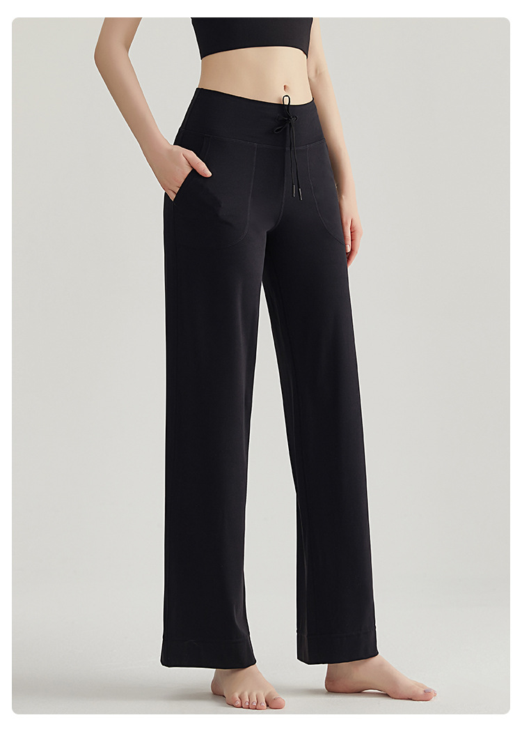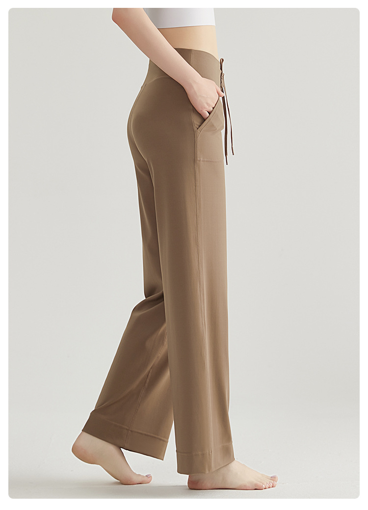라헨 요가 팬츠 플레어 팬츠 여성용 긴바지 하이웨이스트 힙업 슬림핏 드레이프감 캐주얼 사이드 포켓 와이드 팬츠
