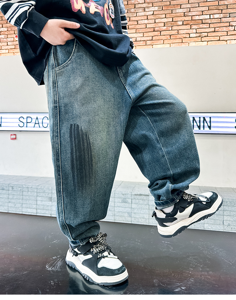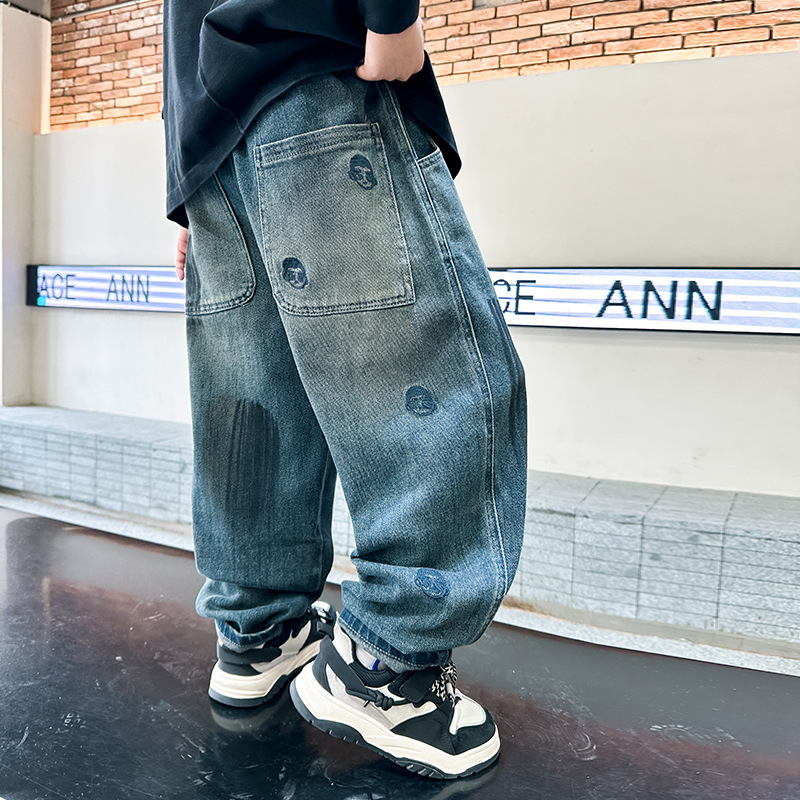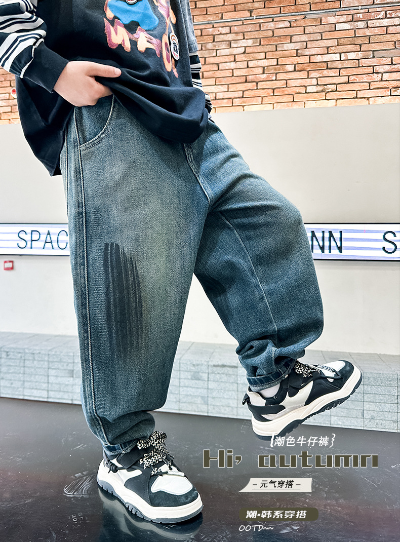 소년 청바지 봄, 가을 2025 새로운 중대형 어린이 가을 캐주얼 바지 소년 가을 잘 생긴 바지 유행스토어 가기