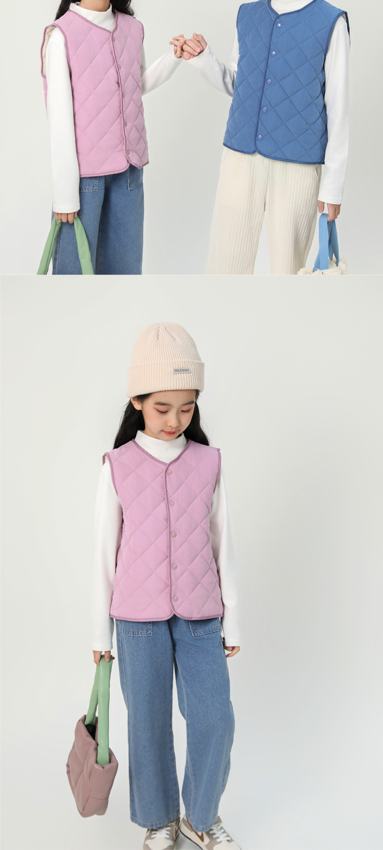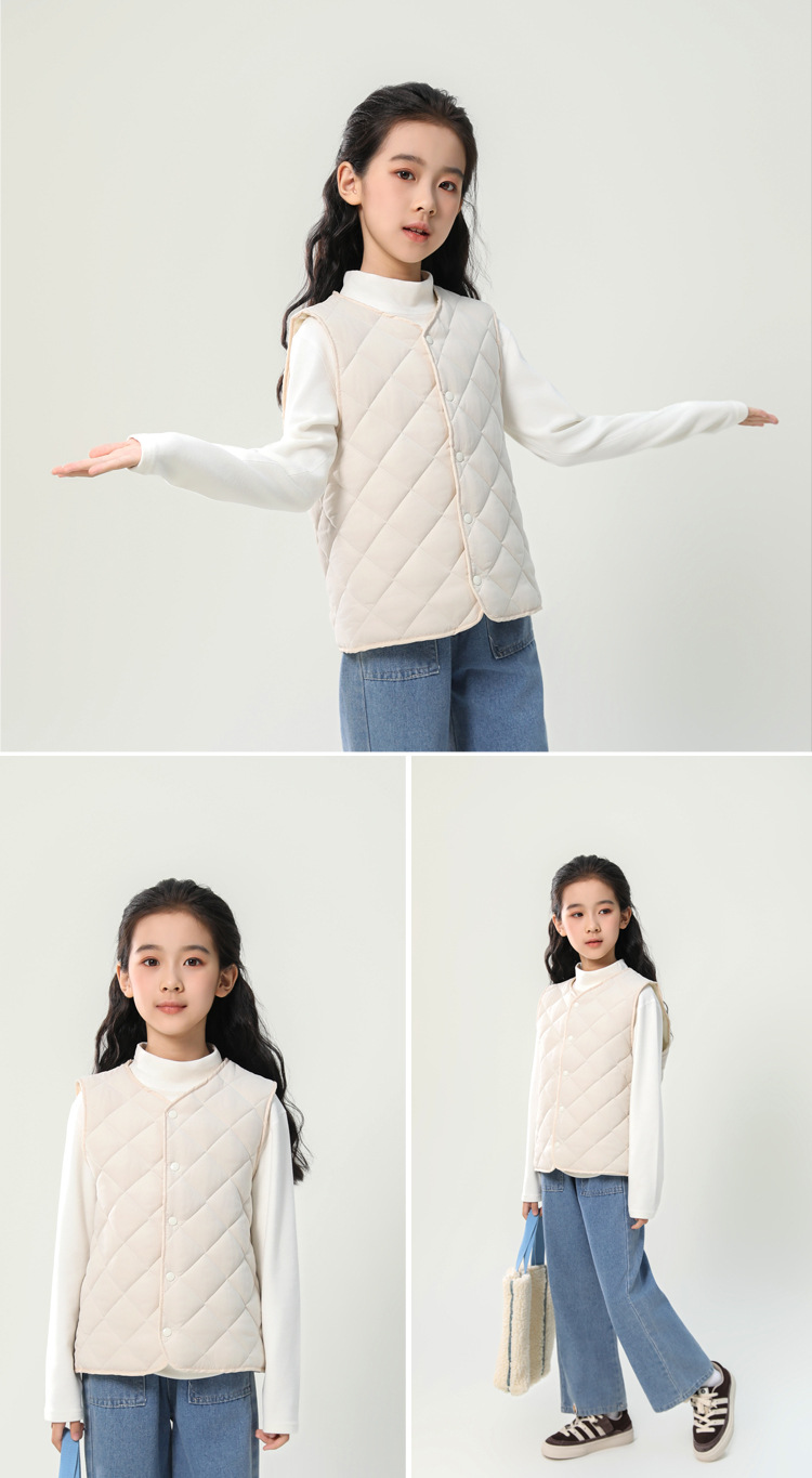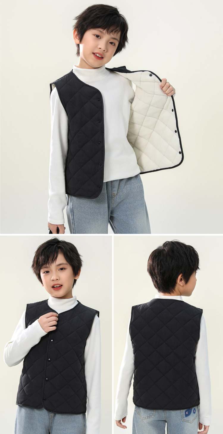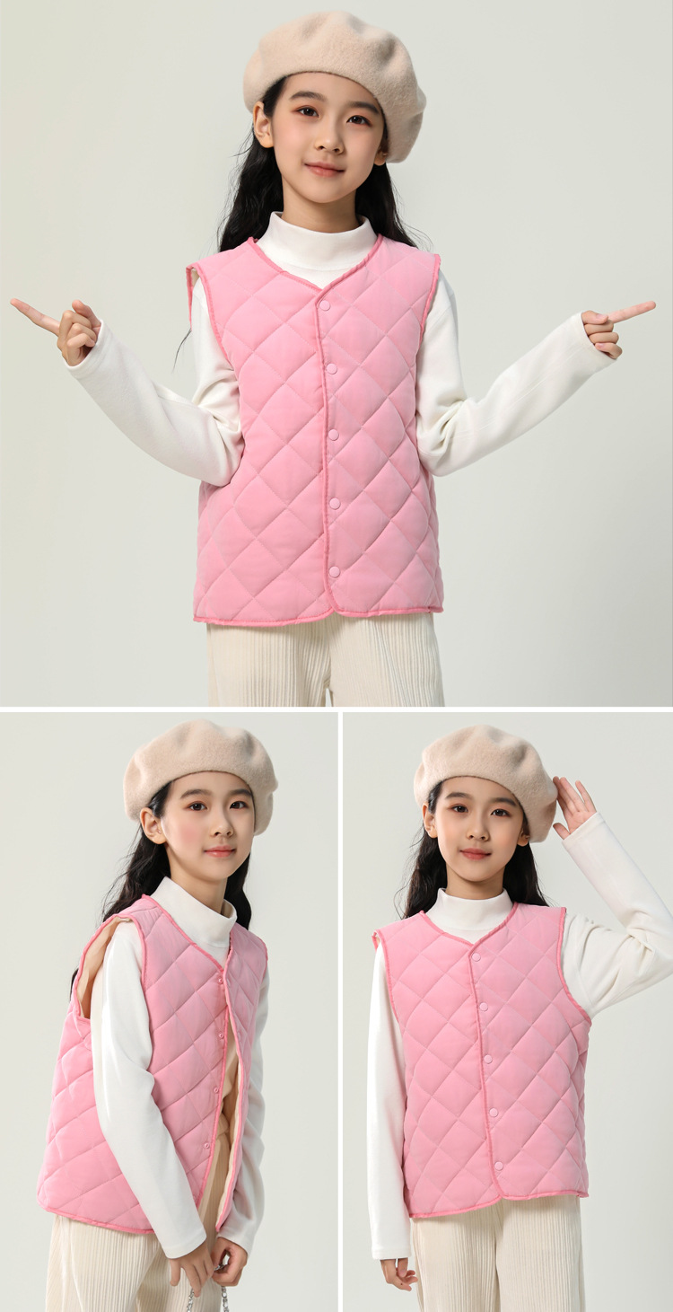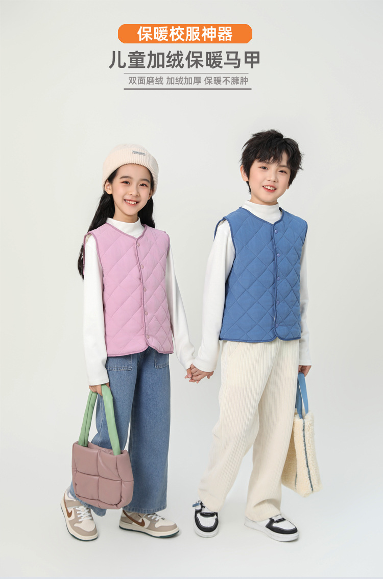 남학생과 여학생을위한 어린이 조끼 초등학생은 가을과 겨울을위한 따뜻한 면화 조끼를 기모.