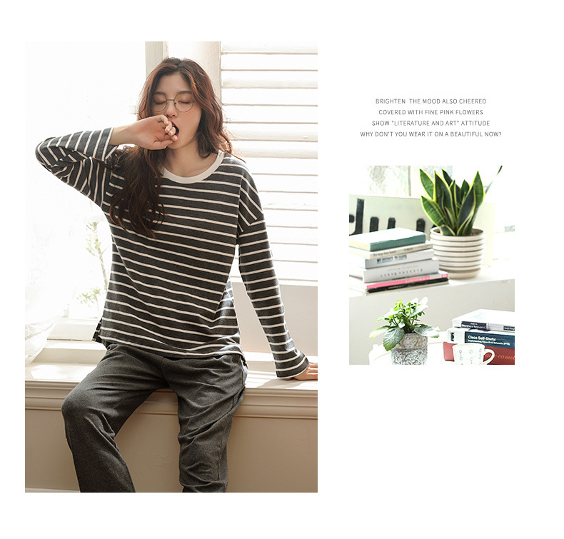 커플 잠옷 여성의 봄과 가을 타이트한 면 긴 소매 봄과 가을 플러스 사이즈 둥근 목 느슨한 집 옷 세트 줄무늬스토어 가기