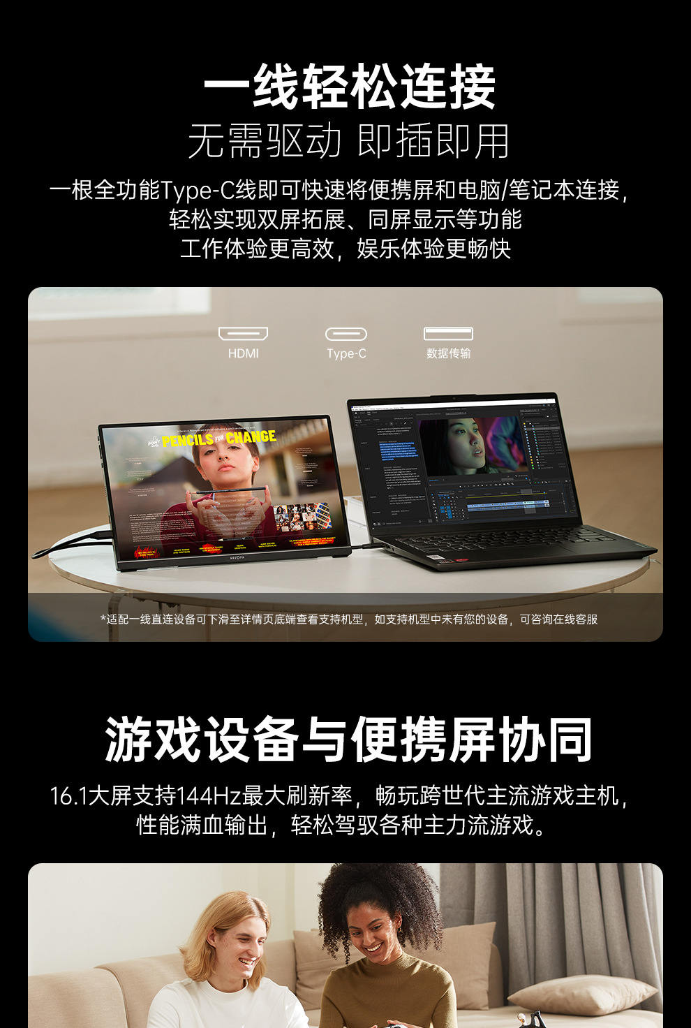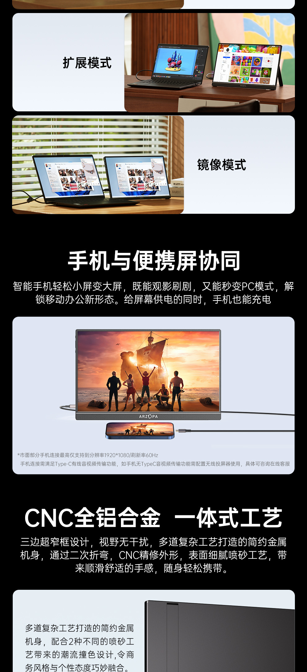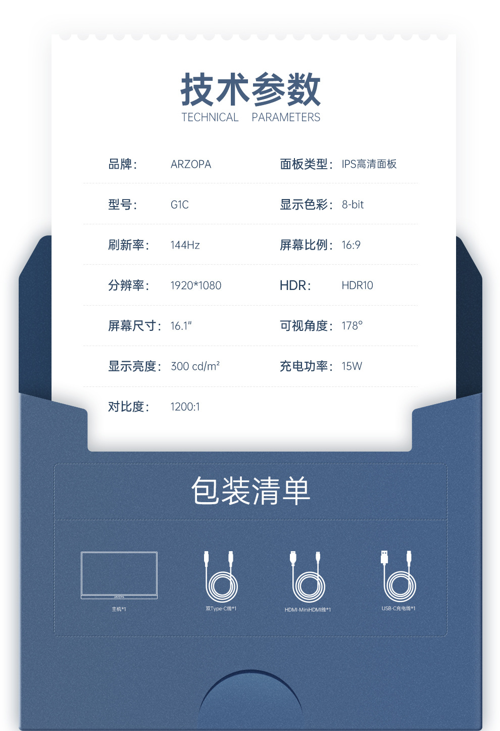 ARZOPA 16.1 인치 144HZ 휴대용 디스플레이 노트북 휴대 전화 회선이 보조 화면에 직접 연결스토어 가기