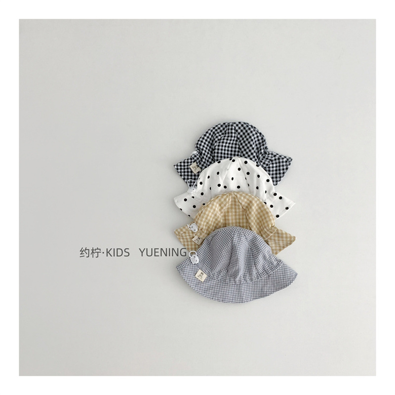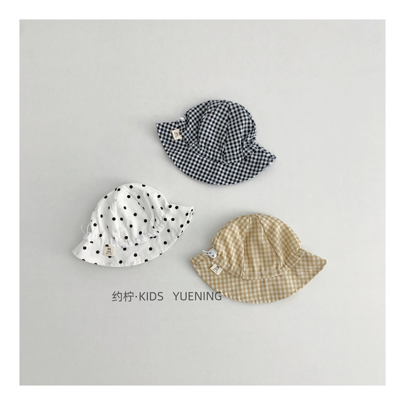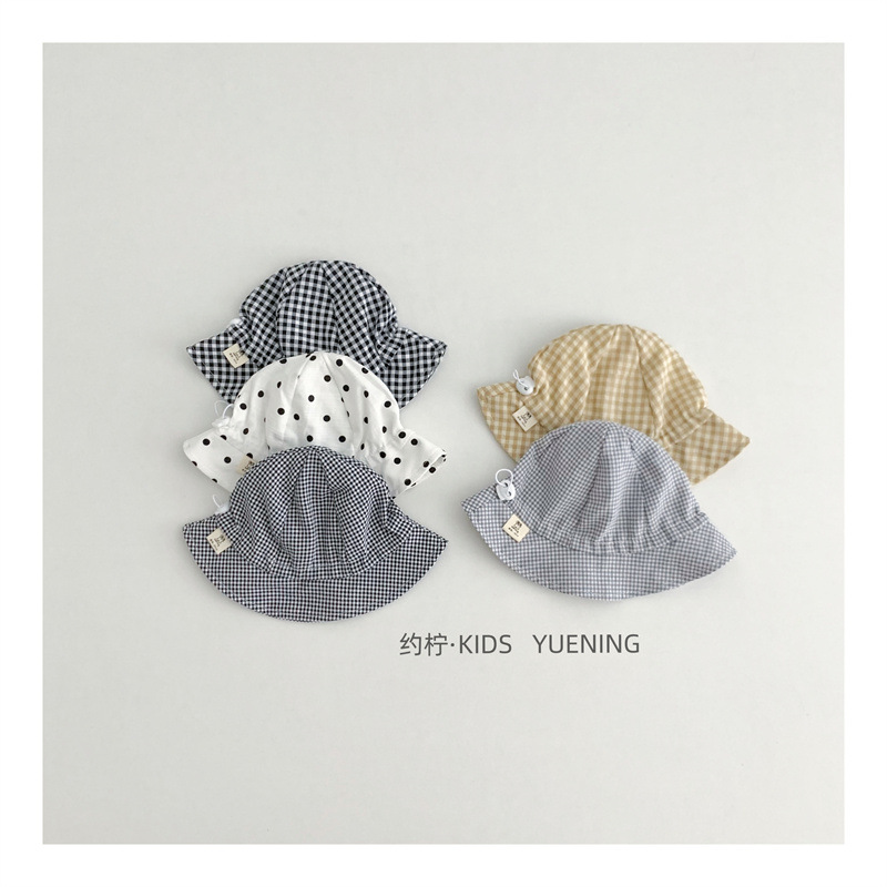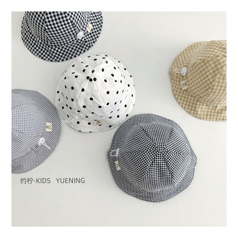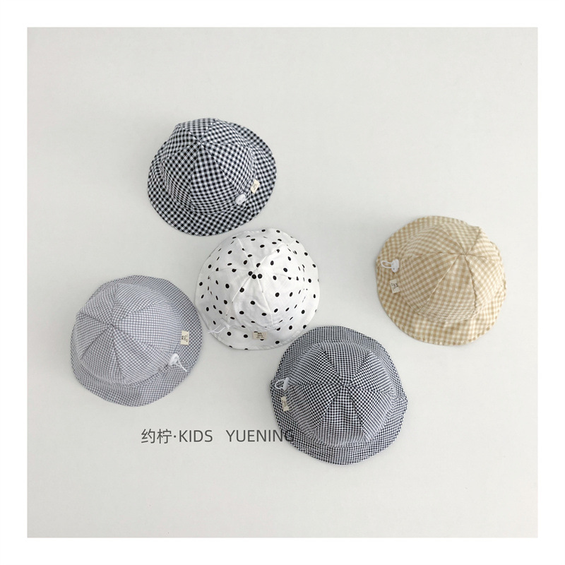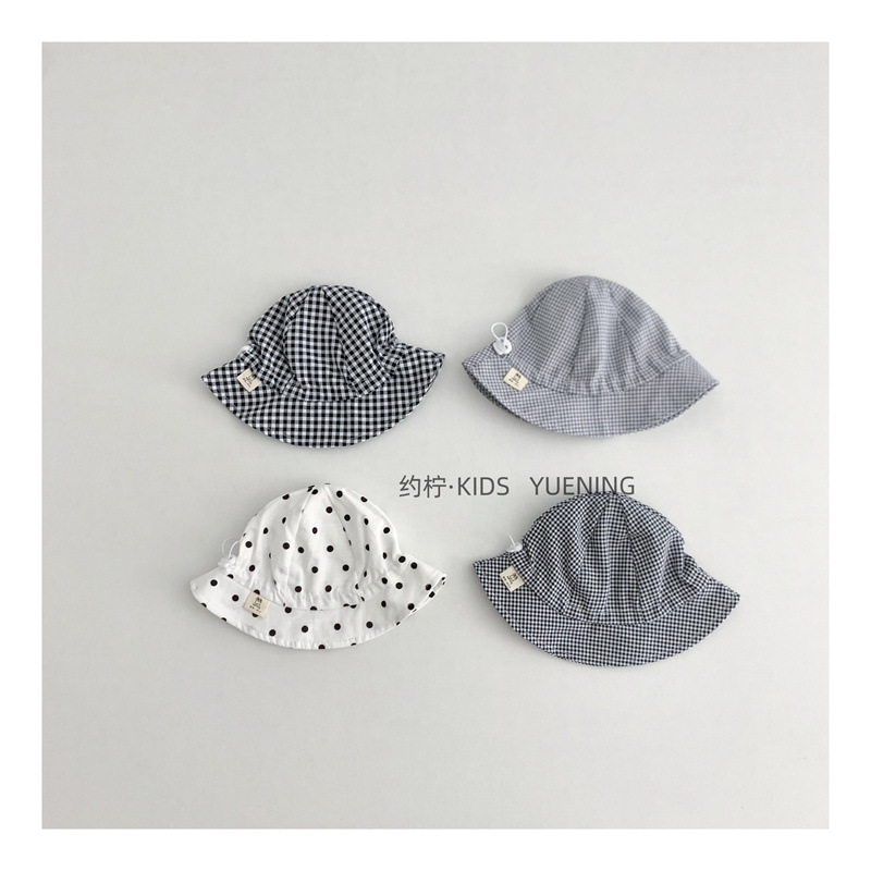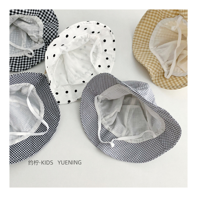 Ins 아기 그늘 모자 캐주얼 올매치 작은 신선한 격자 무늬 도트 어부 모자 아기 돔 통기성 분지 모자