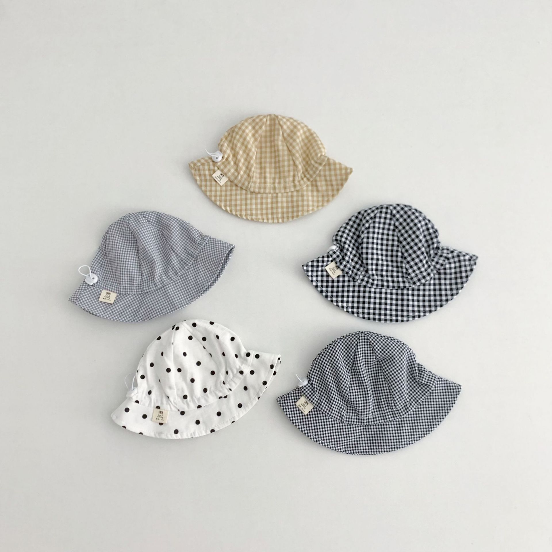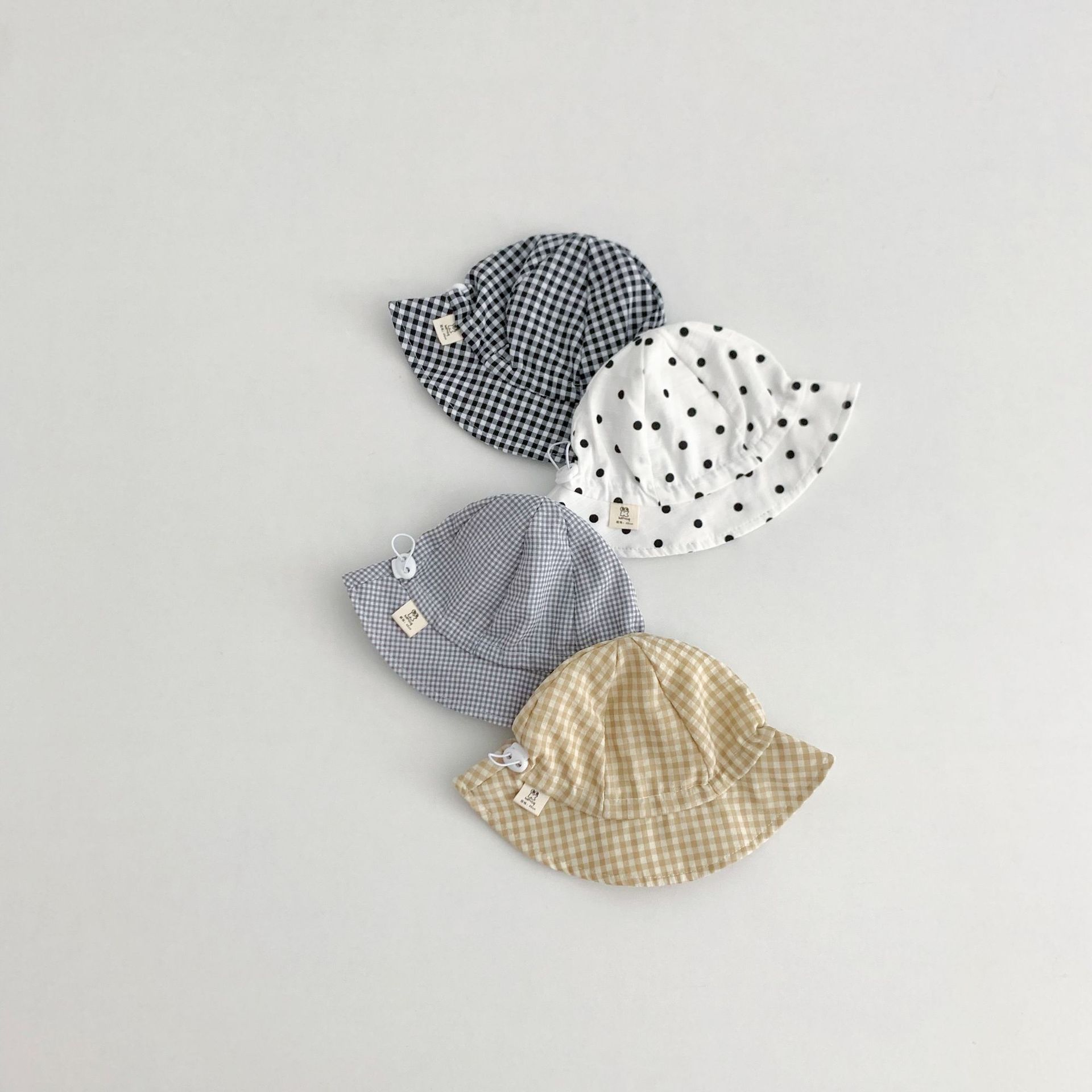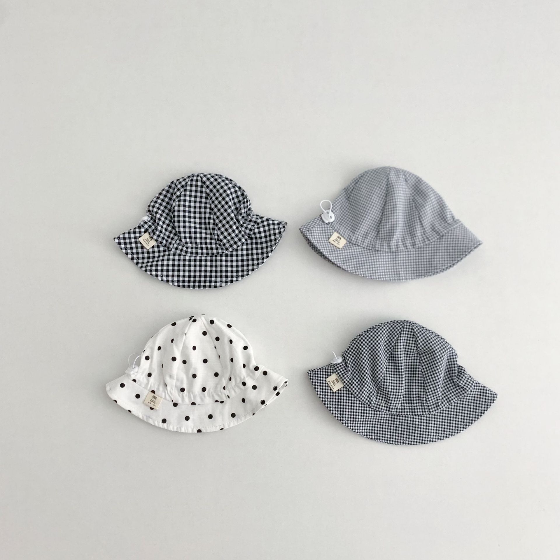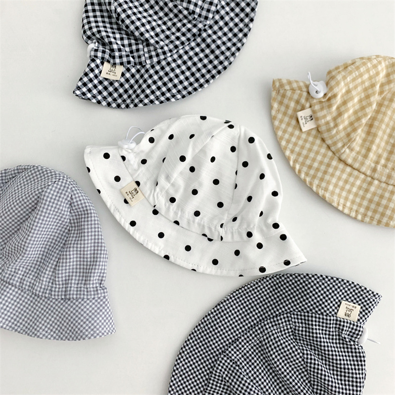 Ins 아기 그늘 모자 캐주얼 올매치 작은 신선한 격자 무늬 도트 어부 모자 아기 돔 통기성 분지 모자