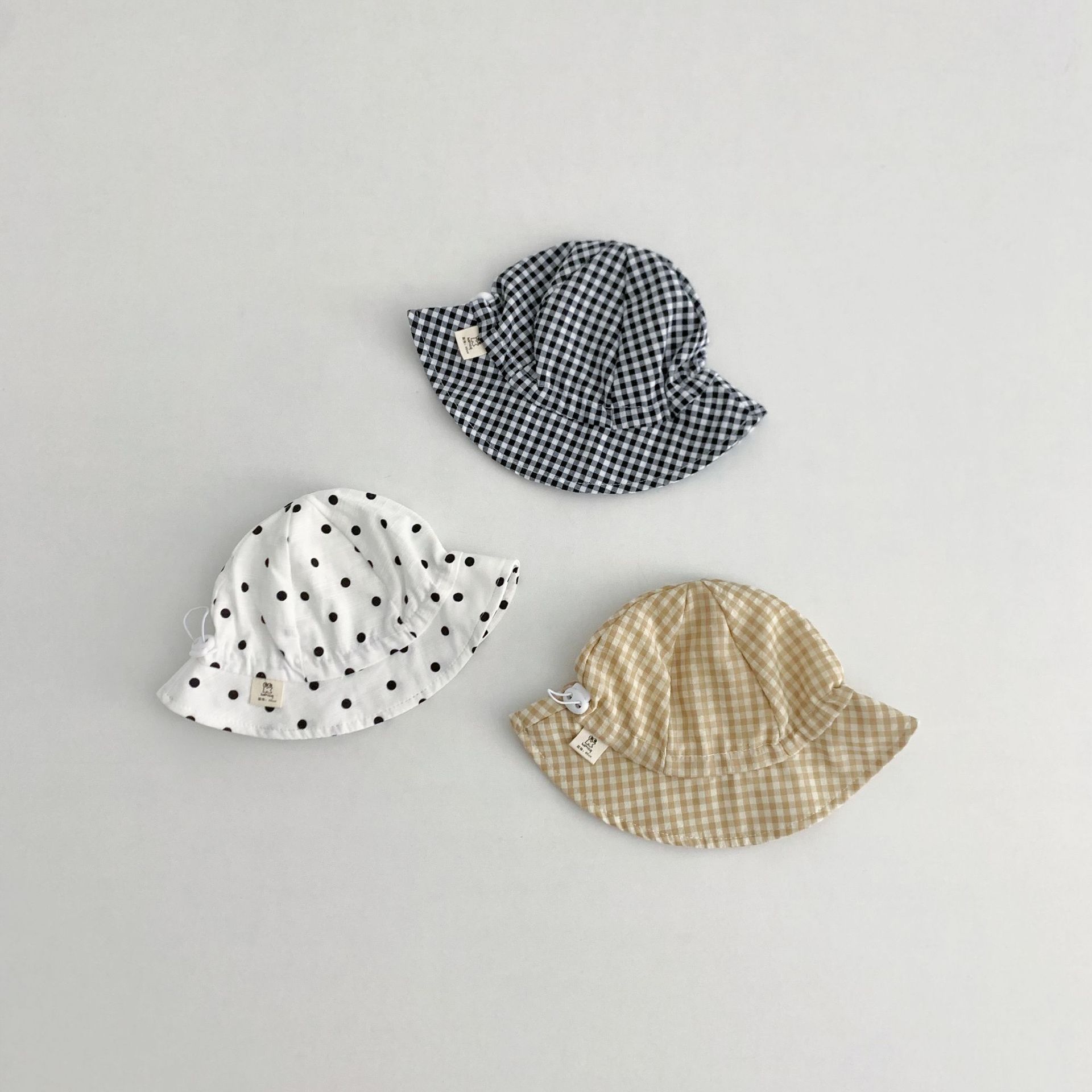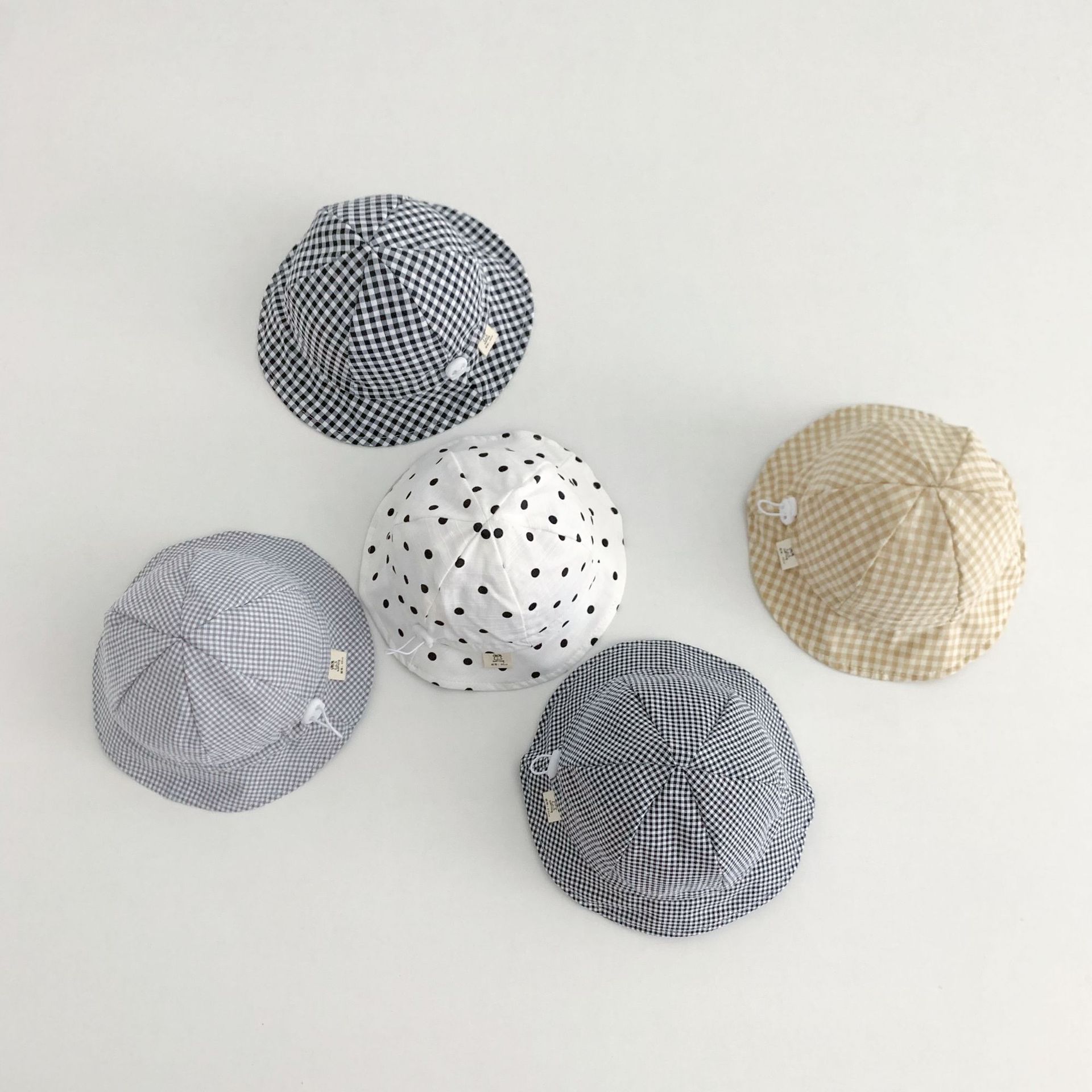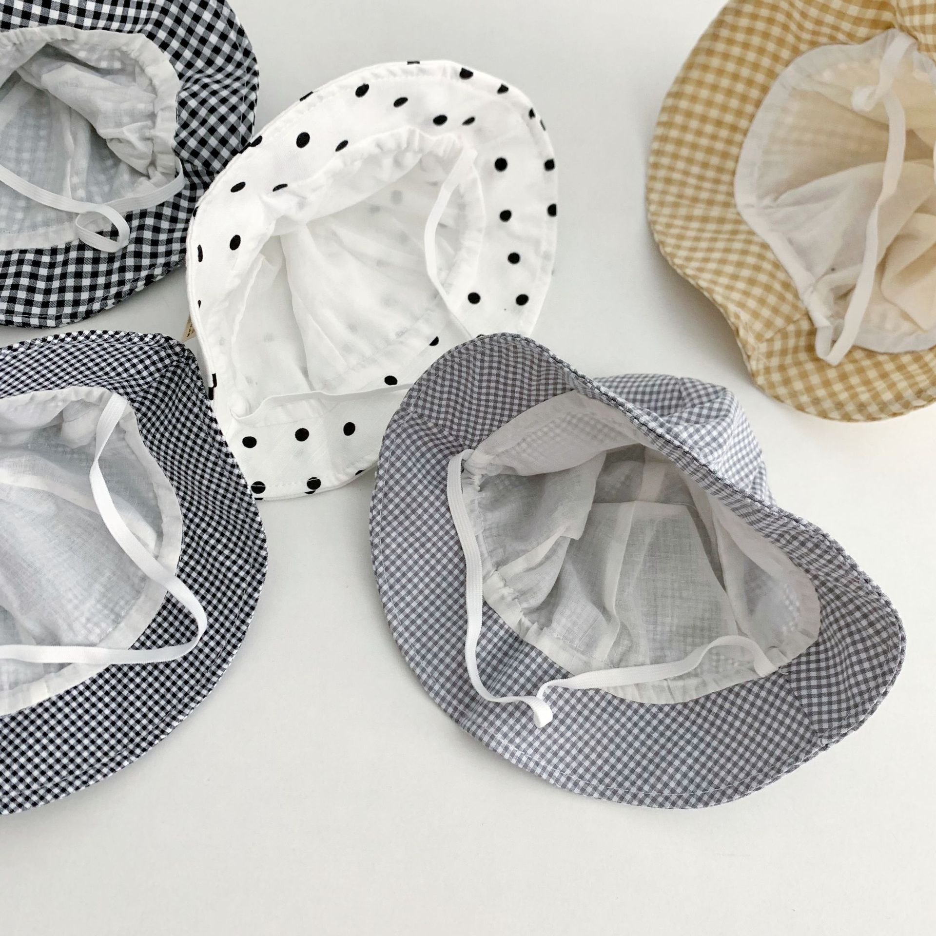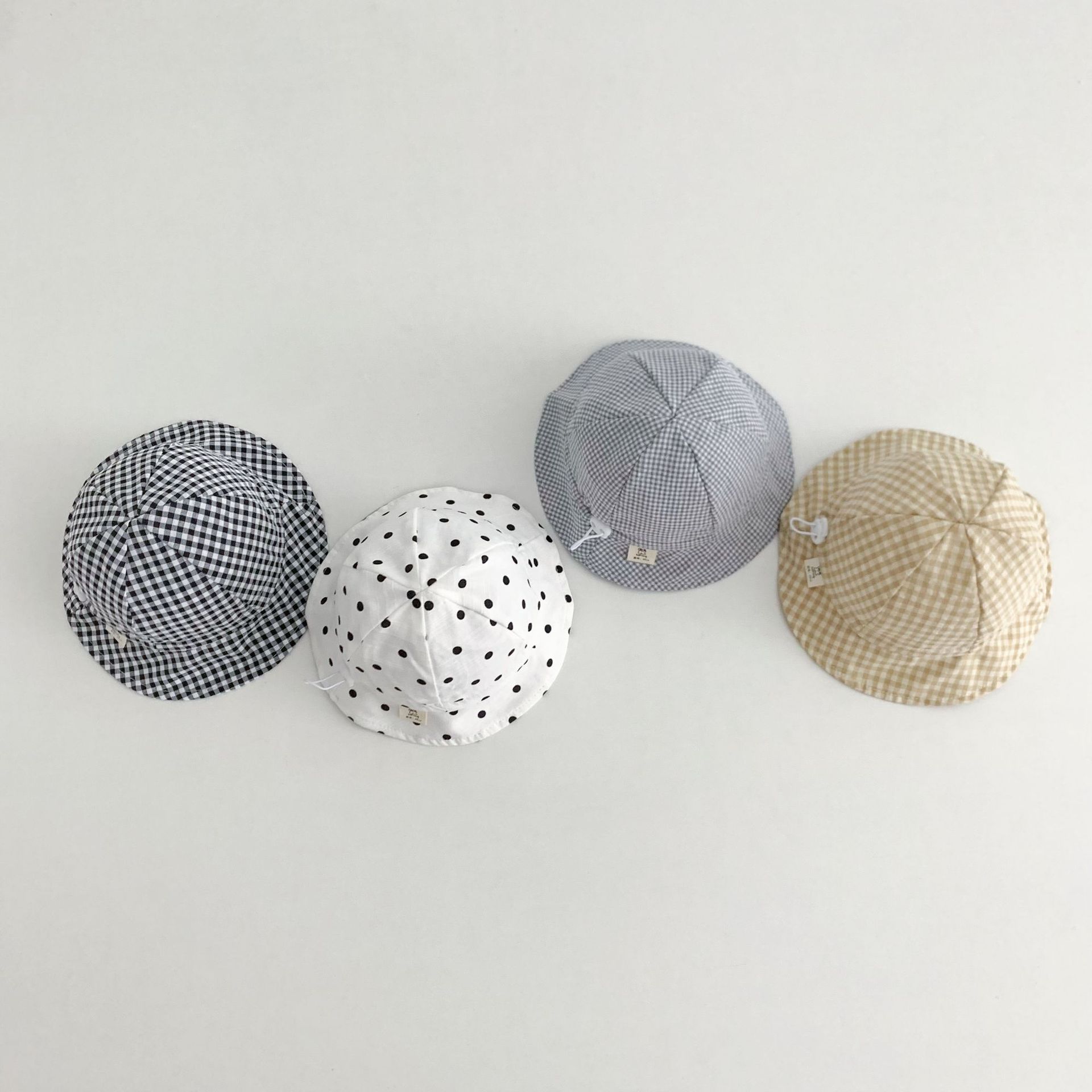 Ins 아기 그늘 모자 캐주얼 올매치 작은 신선한 격자 무늬 도트 어부 모자 아기 돔 통기성 분지 모자