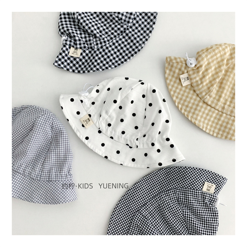 Ins 아기 그늘 모자 캐주얼 올매치 작은 신선한 격자 무늬 도트 어부 모자 아기 돔 통기성 분지 모자스토어 가기