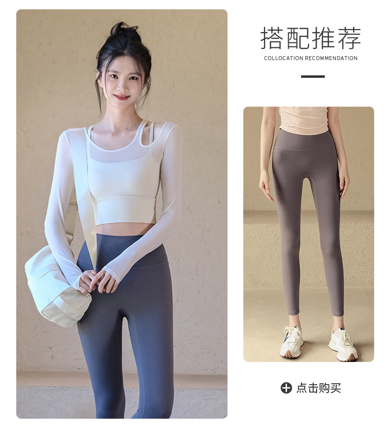요가 의류 여성의 가을과 겨울 메쉬 가짜 투피스 스포츠 탑 아름다운 스트랩 가슴 패드 긴 소매 필라테 훈련 피트니스 의류스토어 가기