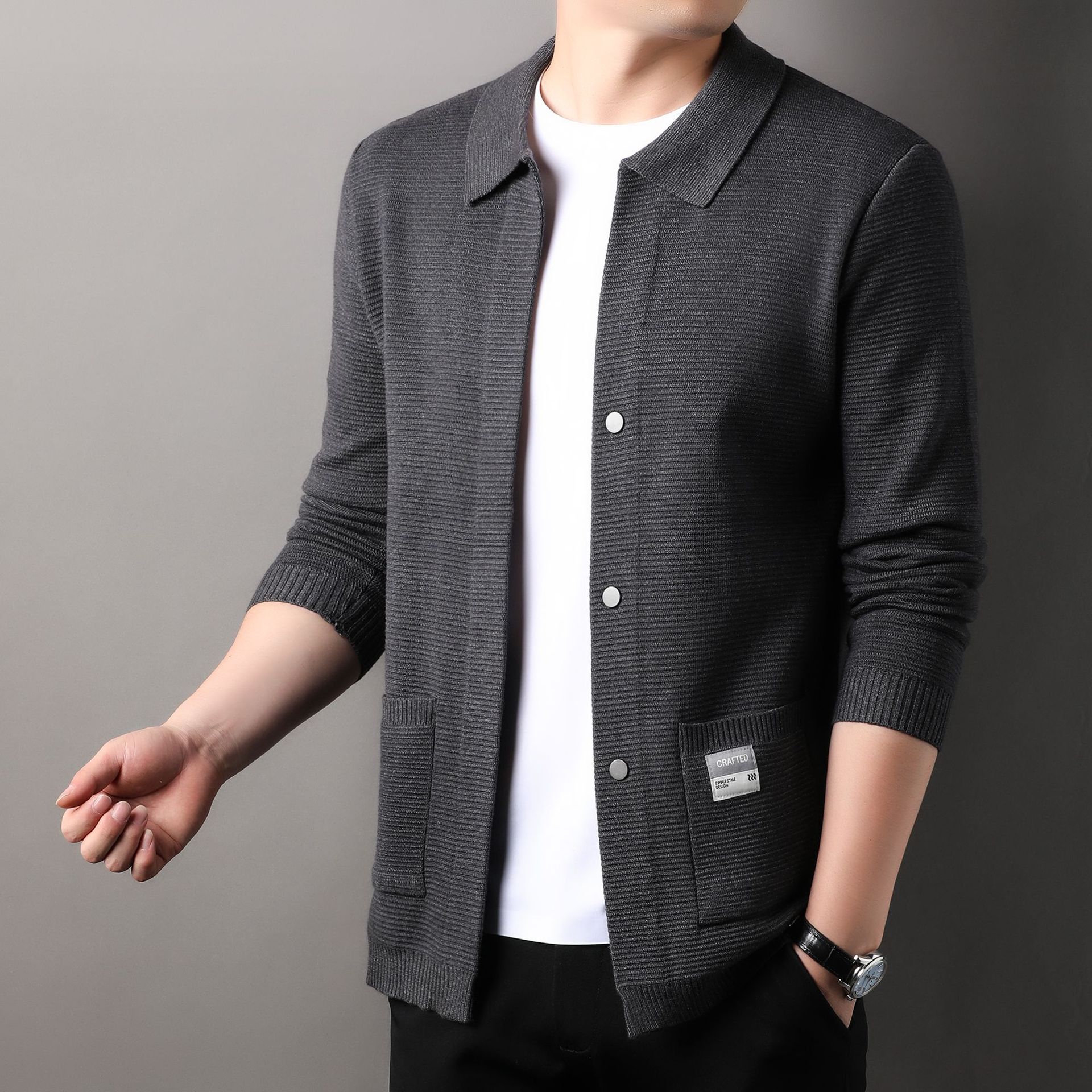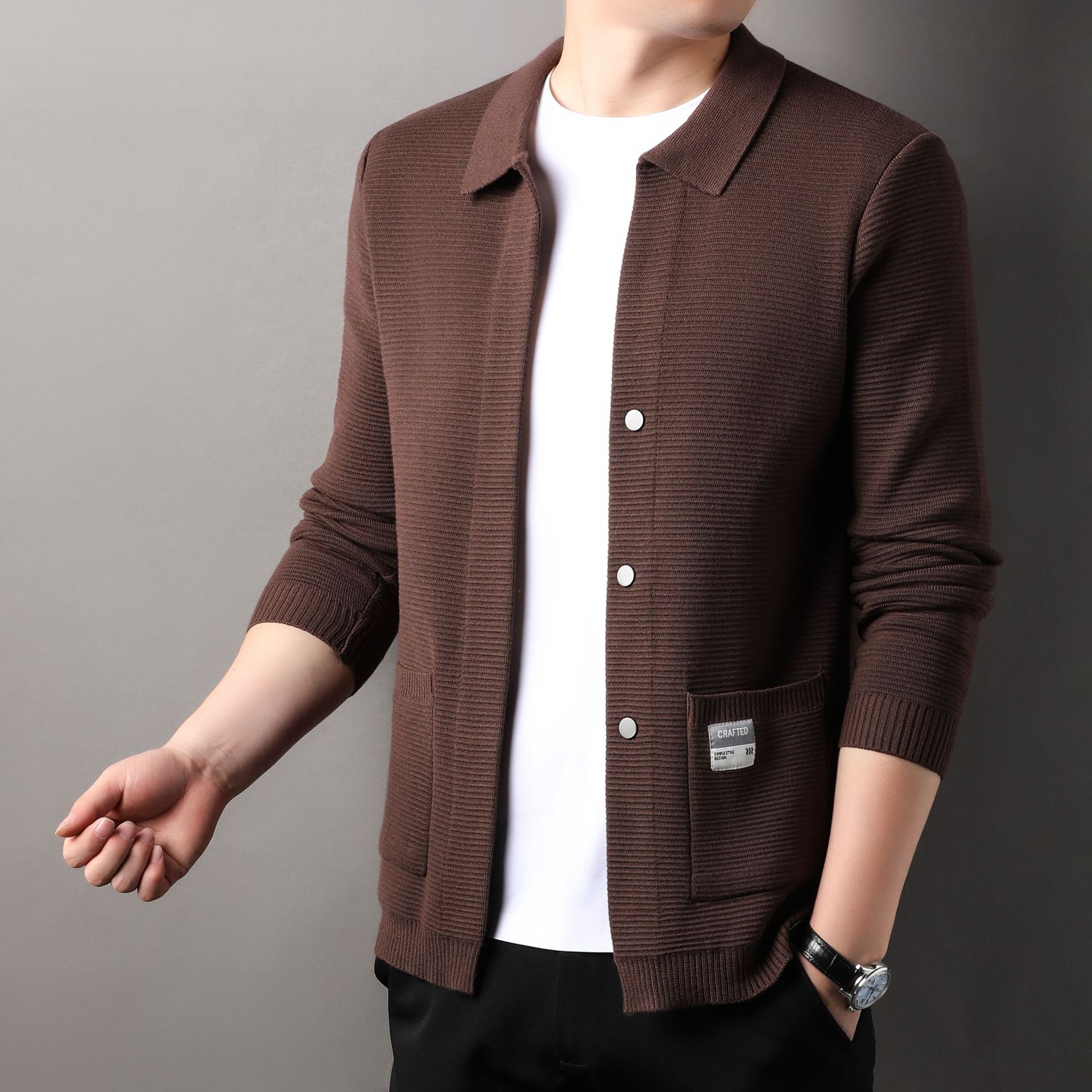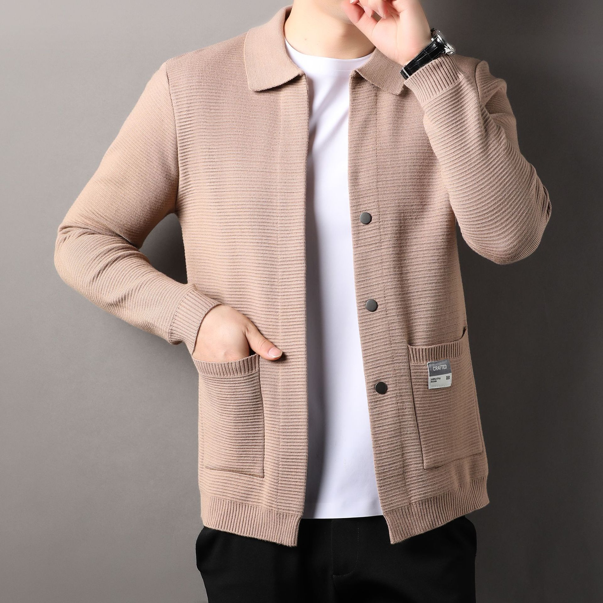 2024 봄과 가을 새로운 청소년 남성 니트 카디건 스웨터 남성 코트 남성용 캐주얼 단색 머리카락 세대스토어 가기