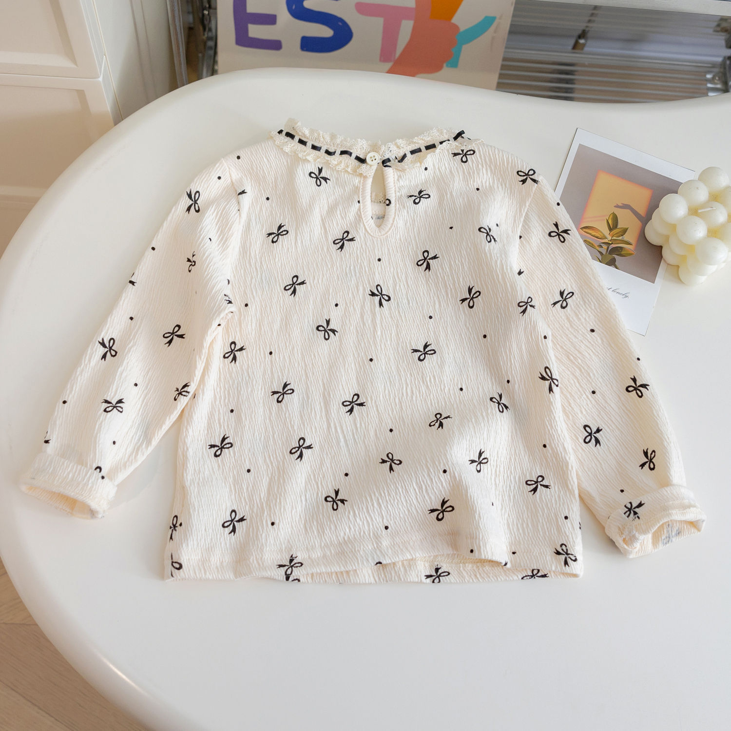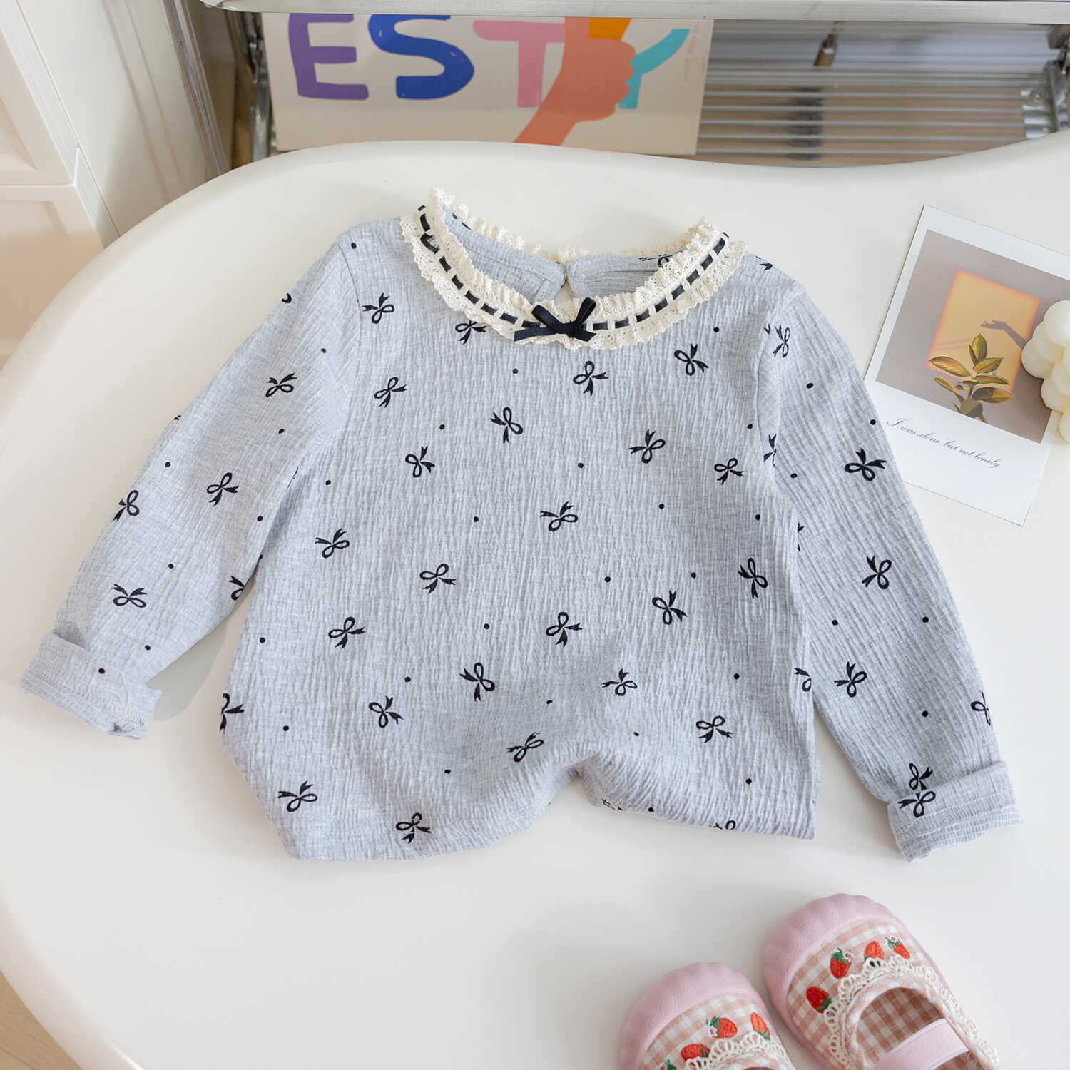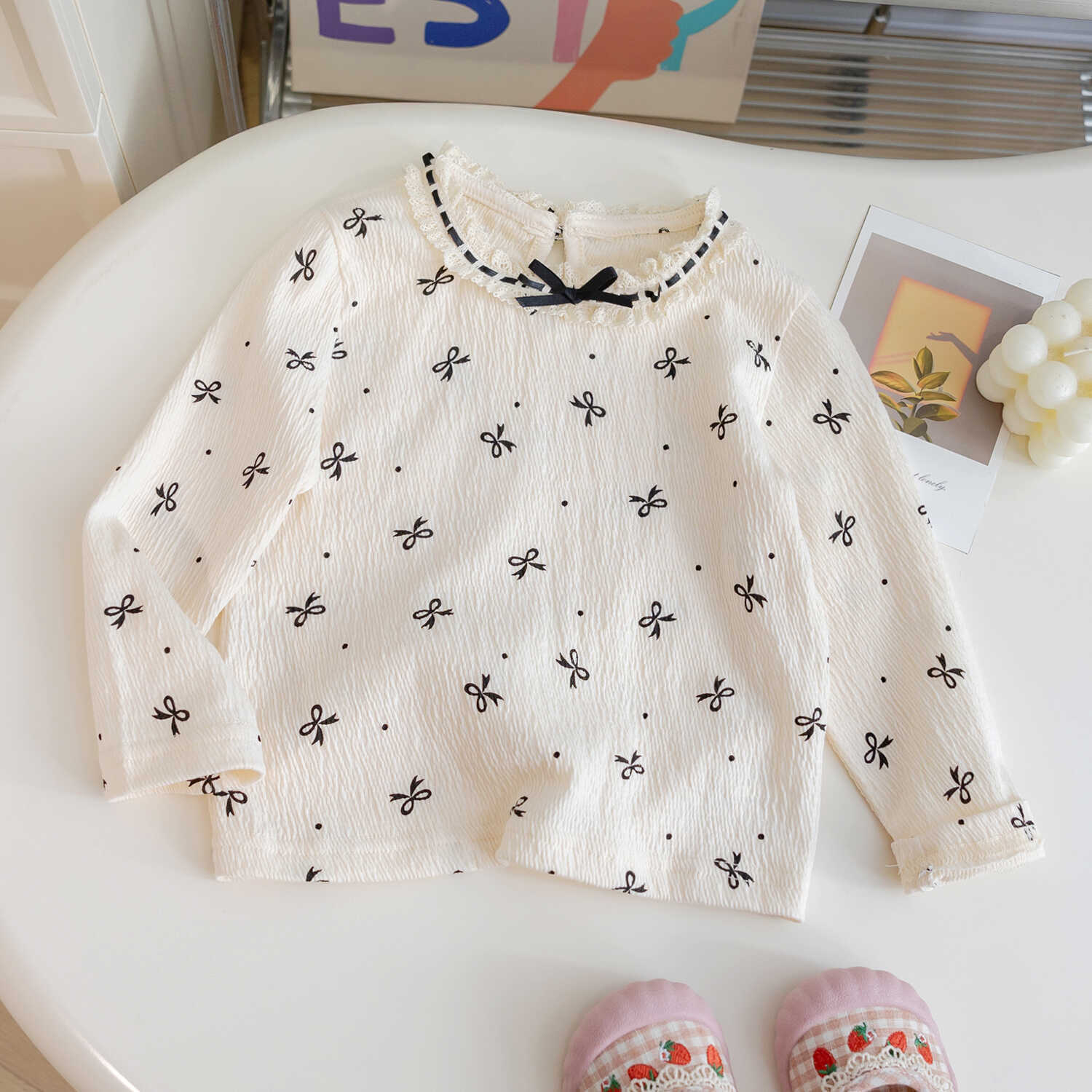 소녀들 한국식 봄과 가을 서양식 긴팔 티셔츠 걸스 레이스베이스 셔츠 어린이 올매치 프린세스 보우 탑스토어 가기