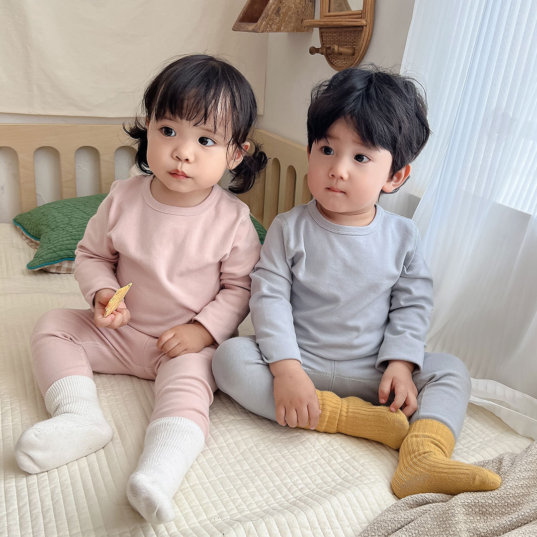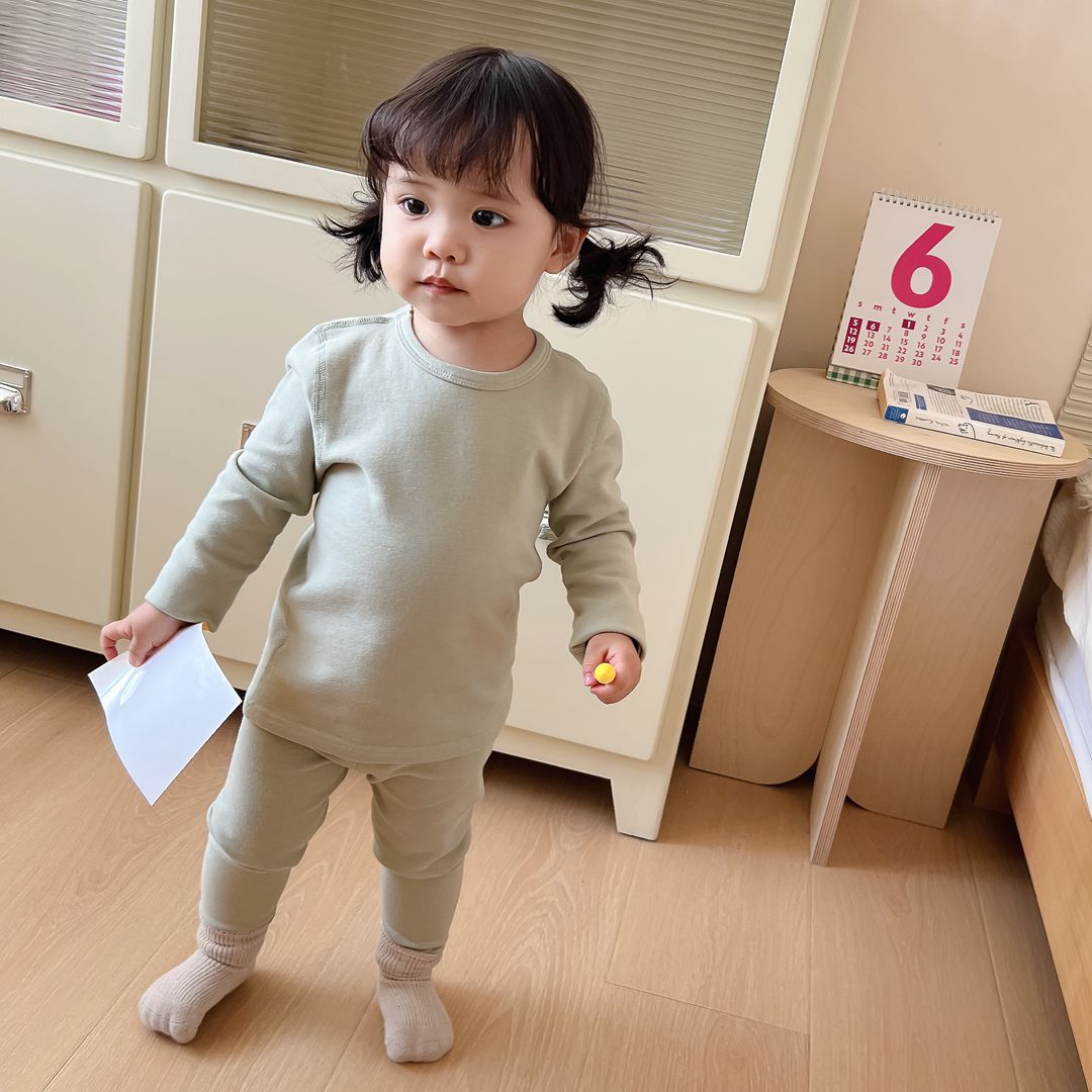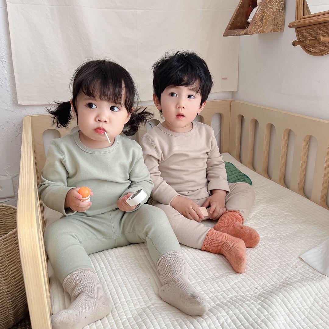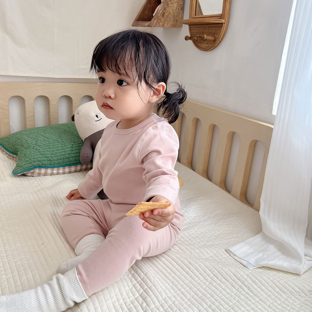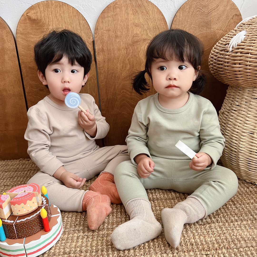 어린이 뼈없는 가을 옷 소년 소녀를위한 가을 바지 따뜻한 면 속옷 아기 잠옷 세트 가을과 겨울 집 옷 한국어스토어 가기