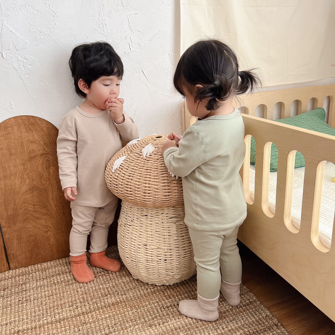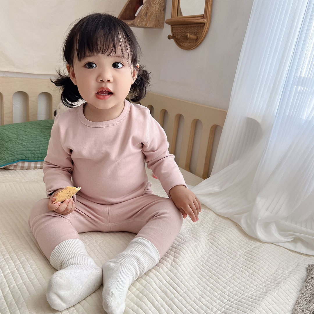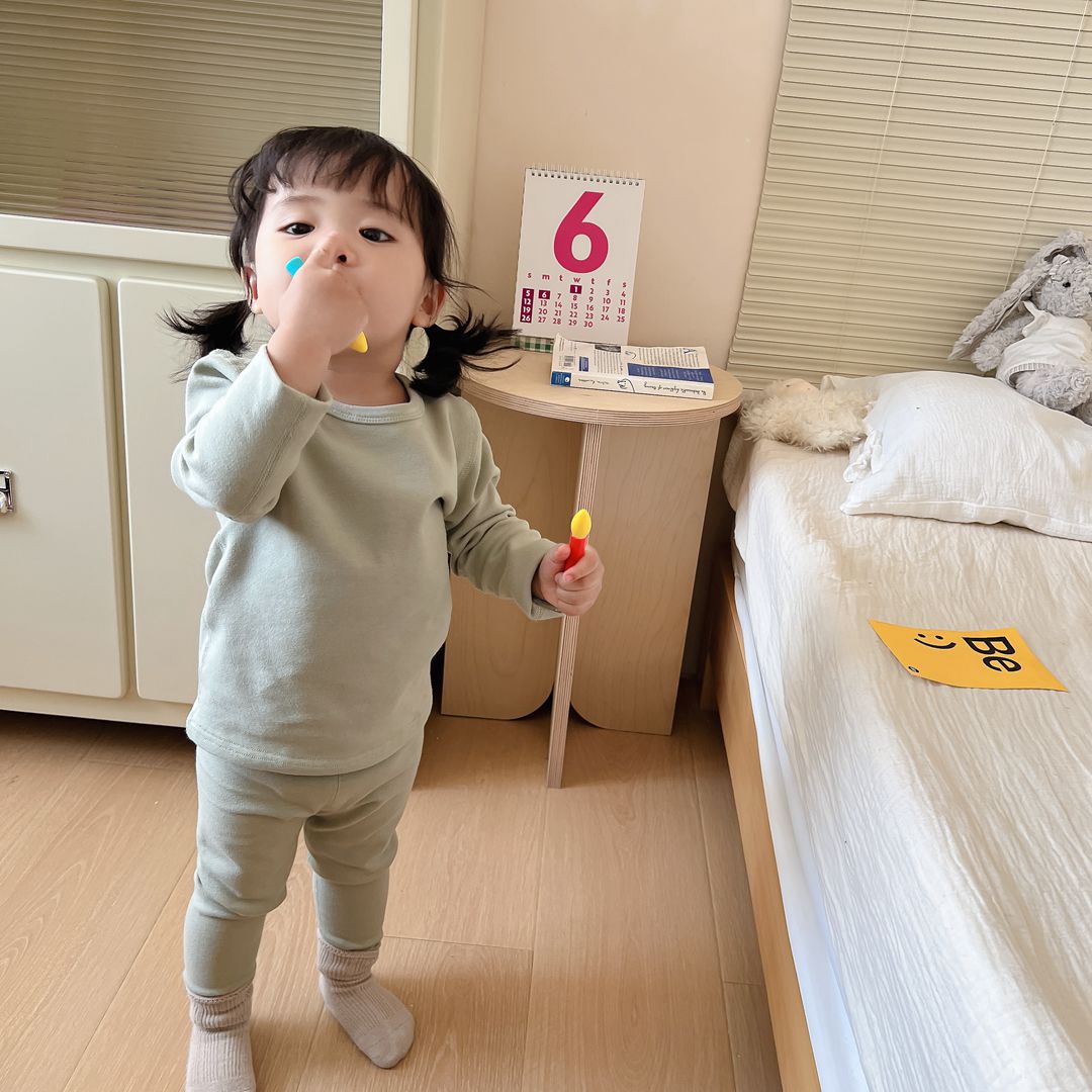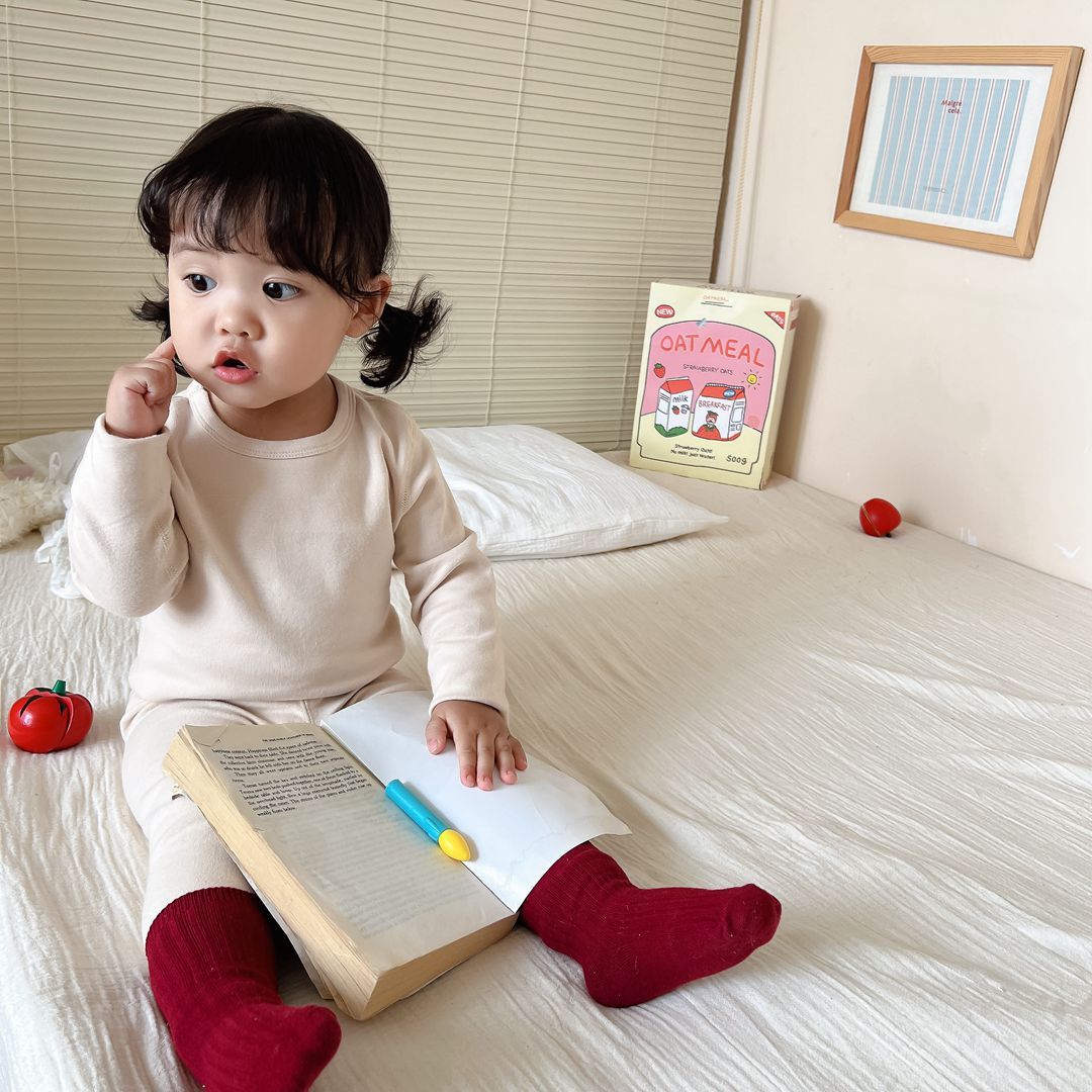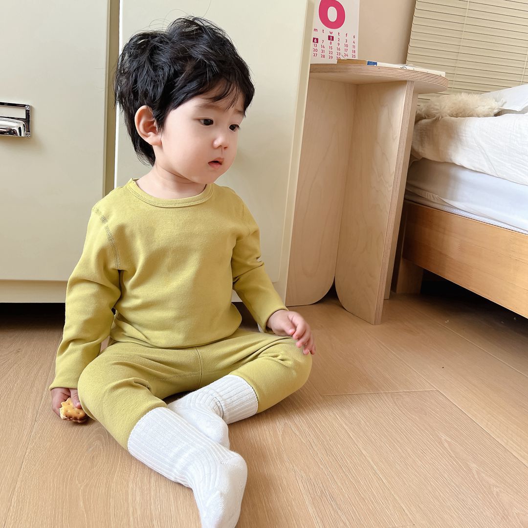 어린이 뼈없는 가을 옷 소년 소녀를위한 가을 바지 따뜻한 면 속옷 아기 잠옷 세트 가을과 겨울 집 옷 한국어스토어 가기