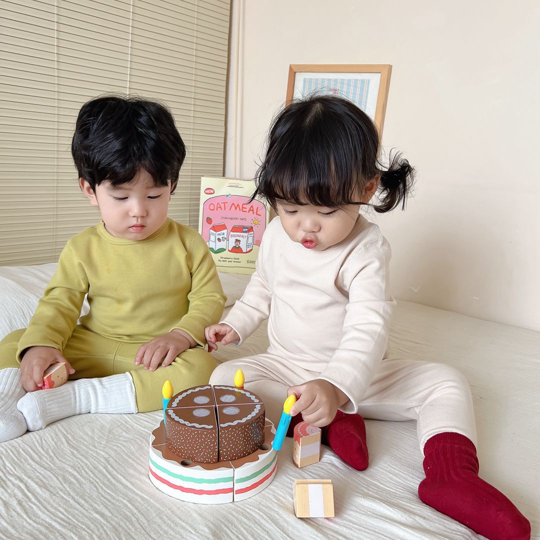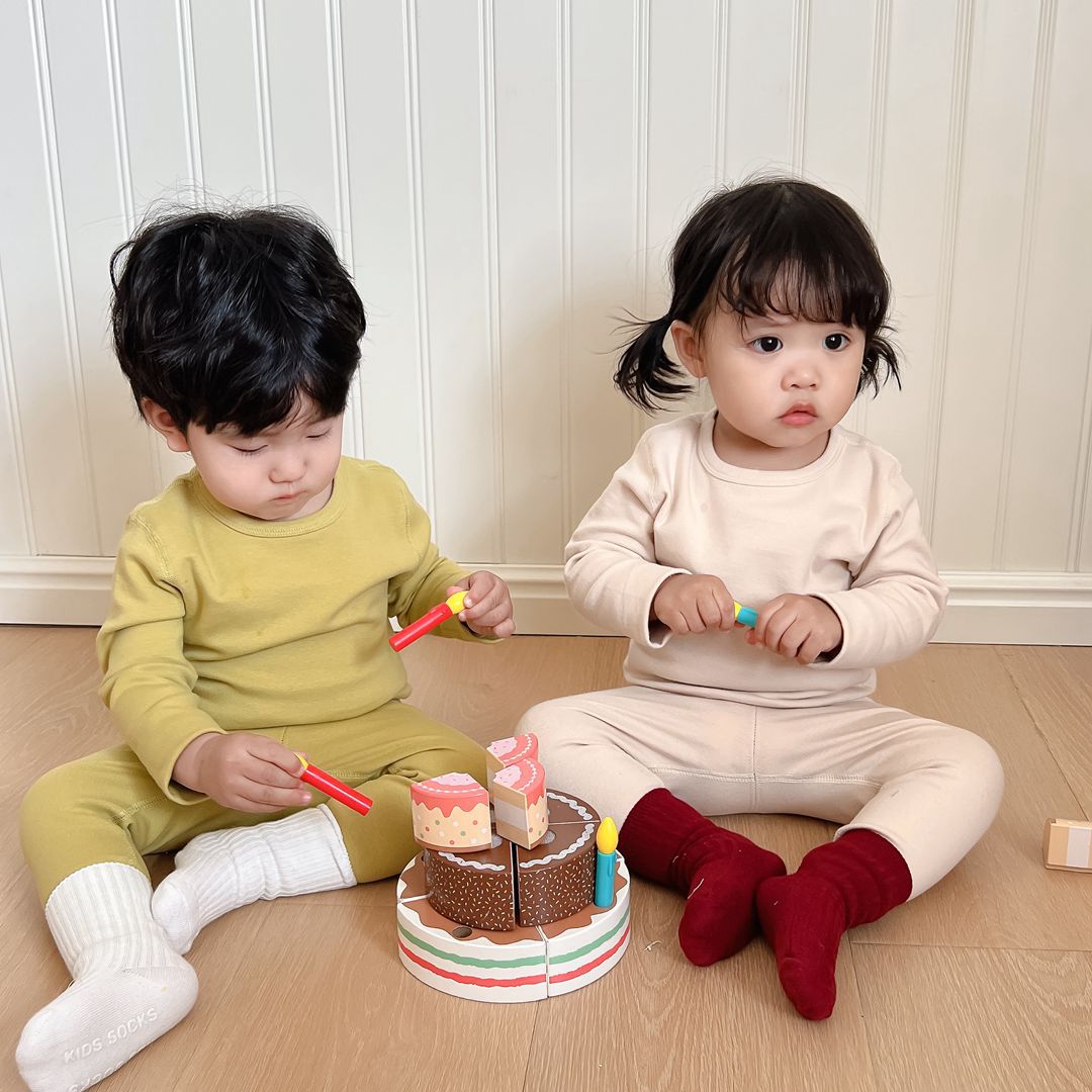 어린이 뼈없는 가을 옷 소년 소녀를위한 가을 바지 따뜻한 면 속옷 아기 잠옷 세트 가을과 겨울 집 옷 한국어