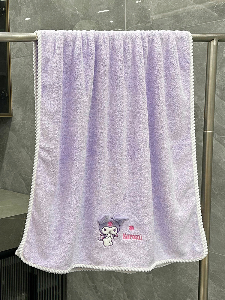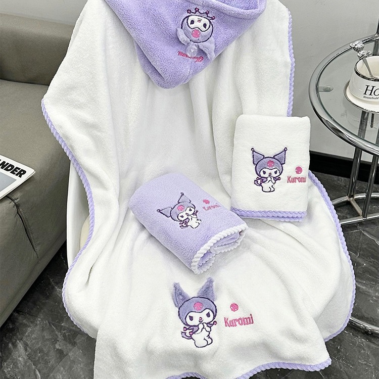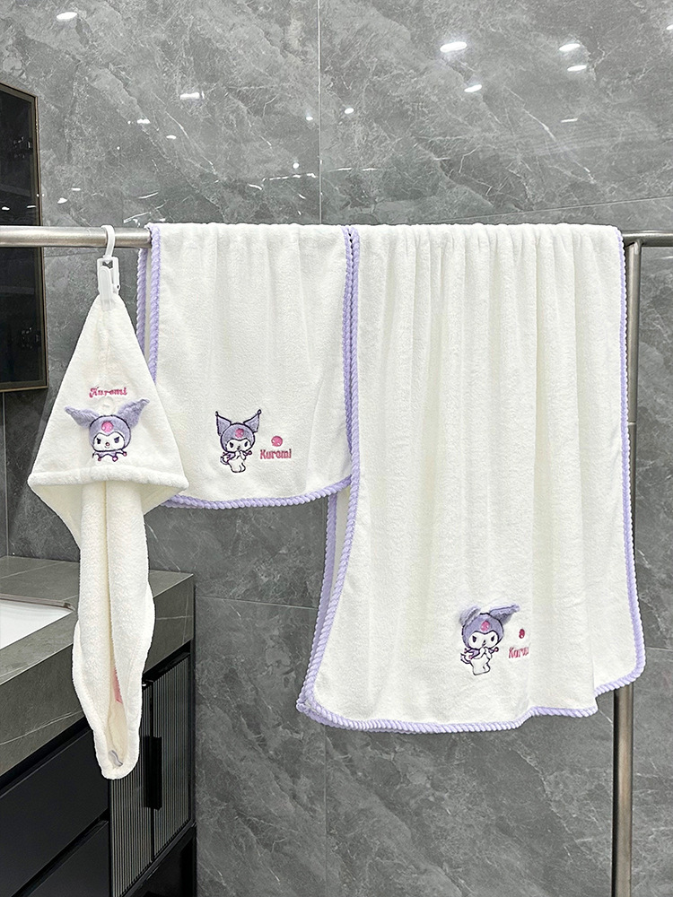 산리오 타월 쿨로 미, 수건 목욕 수건 샤워 캡 만화 산호 양털 3 피스 두꺼운 빠른 건조 흡수제