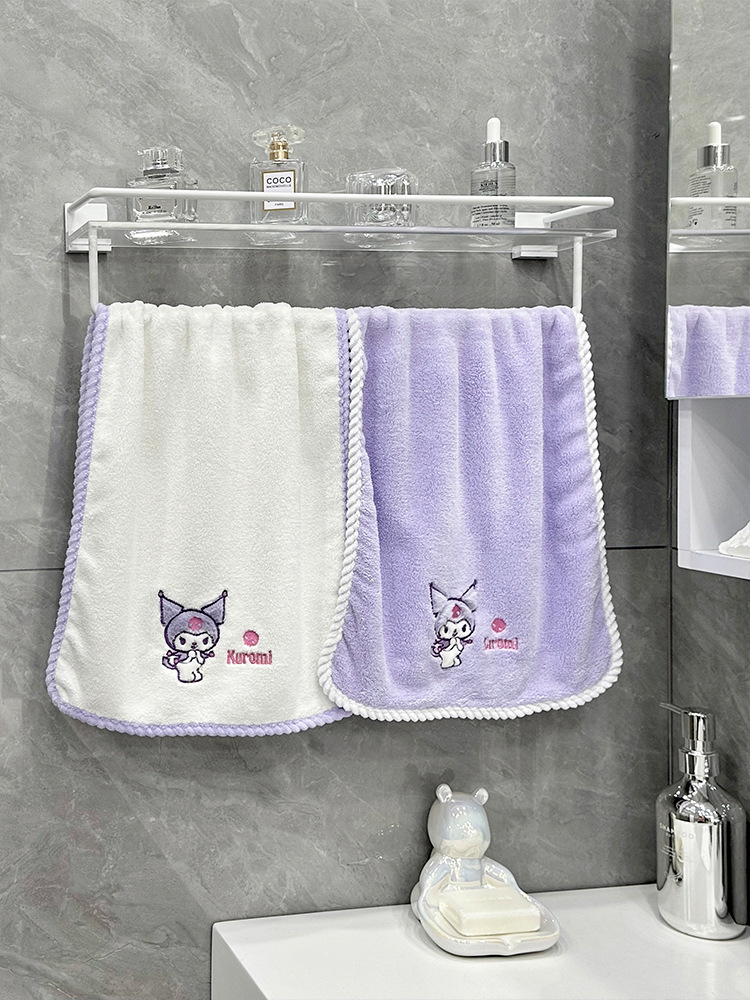 산리오 타월 쿨로 미, 수건 목욕 수건 샤워 캡 만화 산호 양털 3 피스 두꺼운 빠른 건조 흡수제스토어 가기