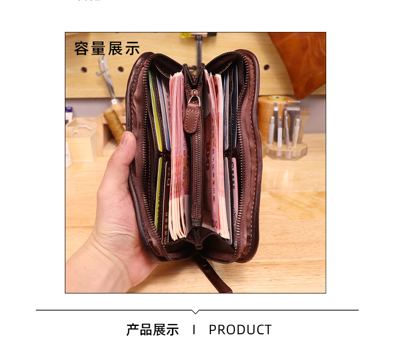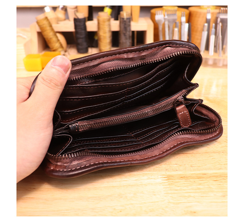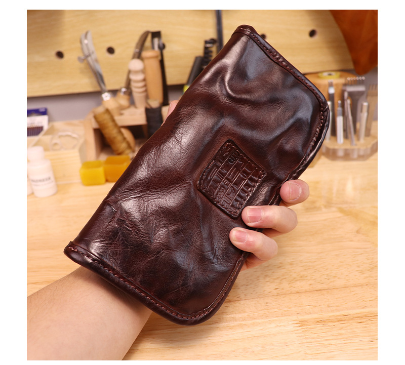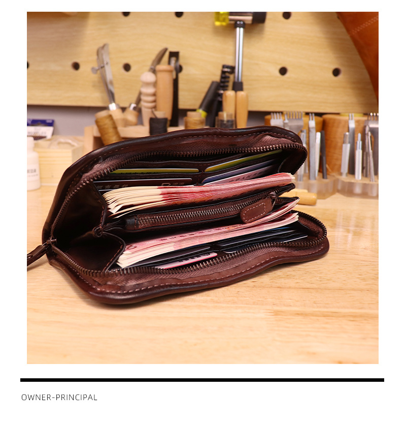 탑 레이어 야채 검게 그을린 가죽 지갑 사용 클러치 백 대용량 휴대 전화 가방 정품 가죽 지퍼 긴 지갑 남성용스토어 가기