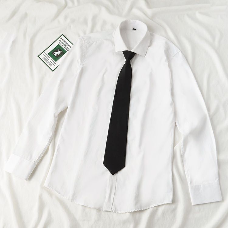 JK 일본 남녀 학생 게으른 지퍼 넥타이 대학 스타일 무료 셔츠 원피스 8CM 와이드 블랙 타이 트렌디