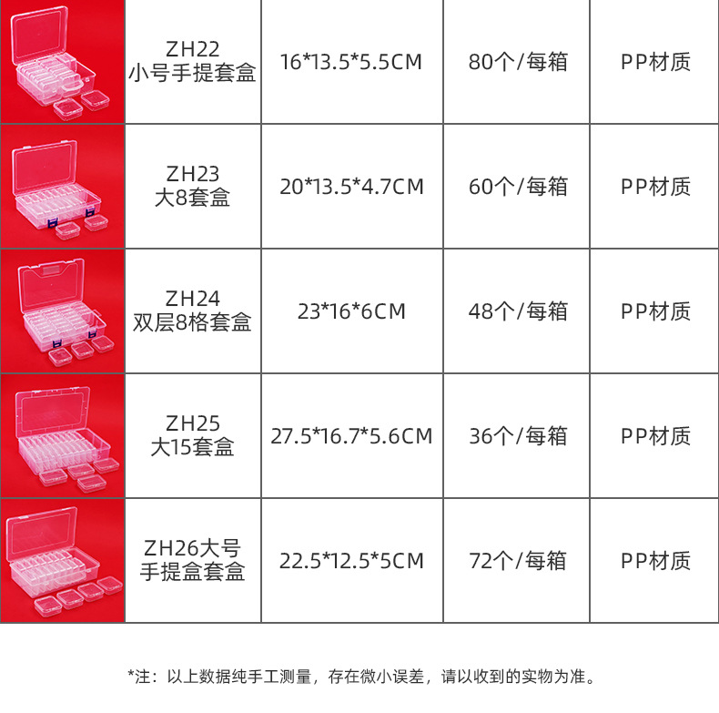 최고의 크로스보더 세트 상자, 투명 플라스틱 상자, 보관 상자, 분리형 격자 상자, 버튼, 낚시 도구 액세서리, 네일 아트 및 주얼리