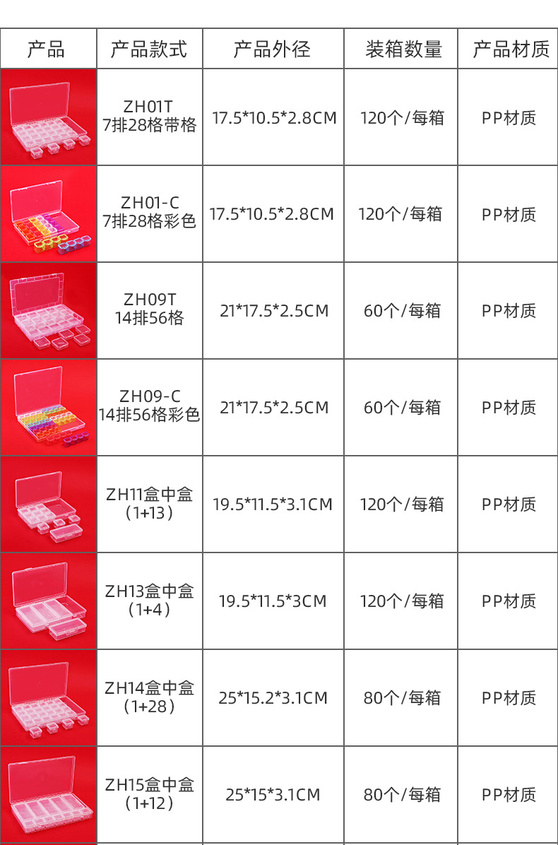 • ZH18 7열 28칸 빈 상자 + 5.5 직사각형 상자 세트 7/외경: 17.5*10.5*2.8cm/상자당 120개
