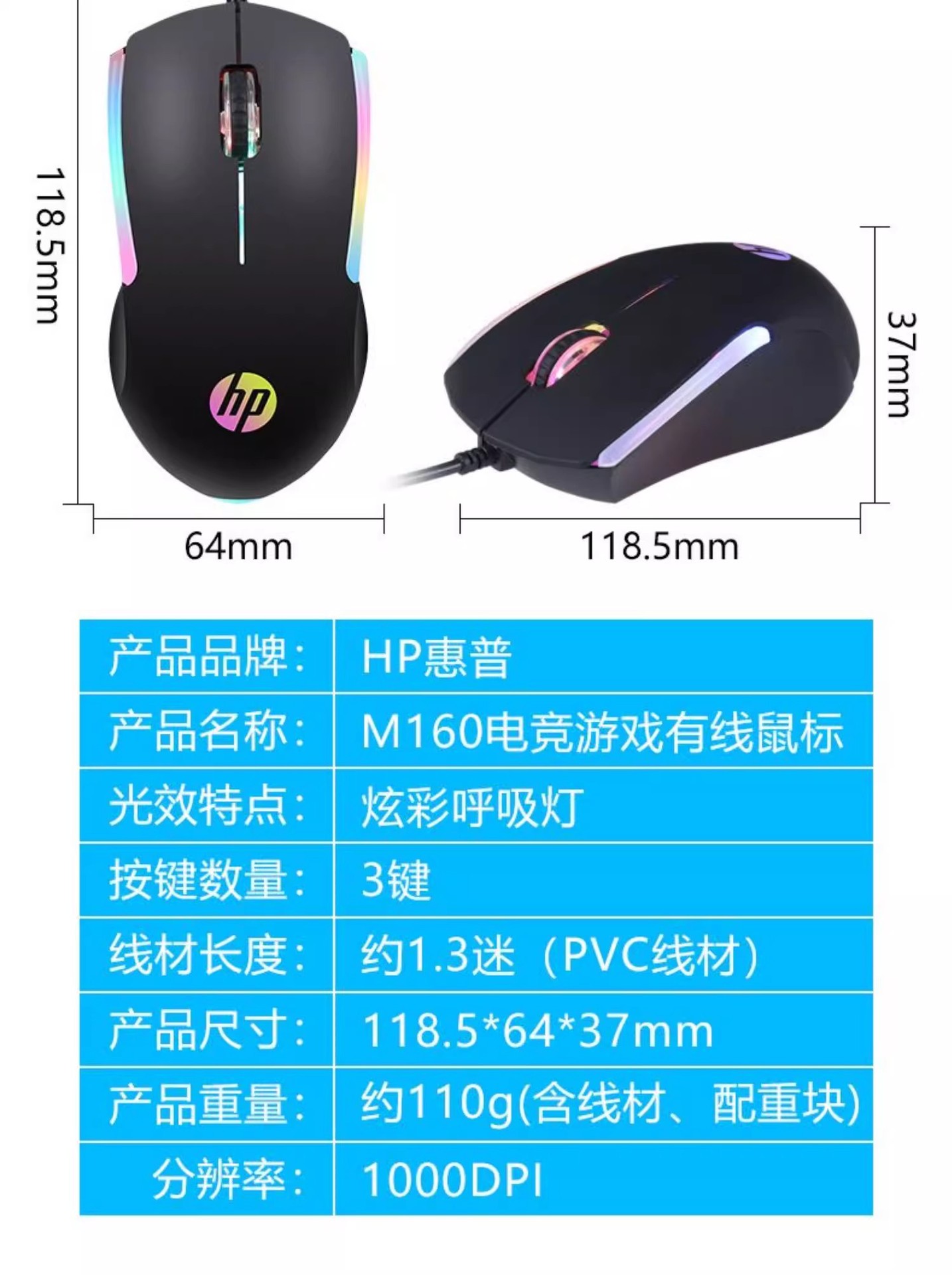 M160 유선 RGB 발광 게임 마우스 노트북 데스크톱 컴퓨터 비즈니스 사무실 마우스 USB스토어 가기