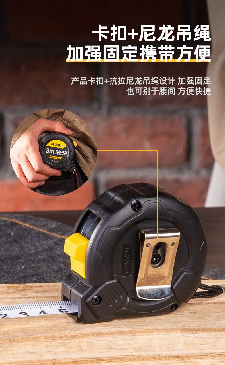 델리 3m 나일론 코팅 강철 테이프 상자 통치자 텔레스코픽 통치자 미터 통치자 미터법 3m * 16mm DL9003P스토어 가기