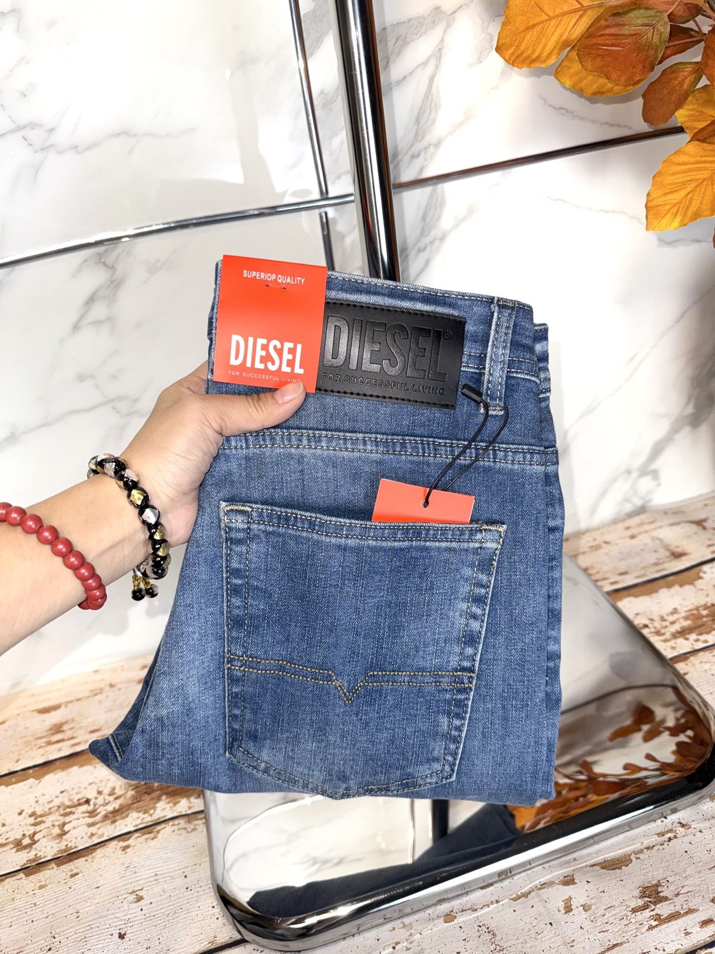 Tang Mu의 고급 유럽 상품 티베트 푸른 봄과 가을 남성 청바지 슬림 핏 작은 스트레이트 스트레치 세척 물 남자 바지 4스토어 가기