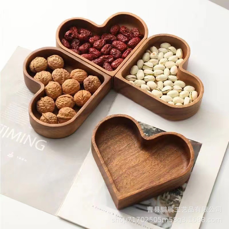 나무 하트 모양의 스낵 트레이 일본식 사랑 트레이 쌓을 수있는 말린 과일 트레이 봄 축제 캔디 트레이 창조적 인 단단한 나무 트레이