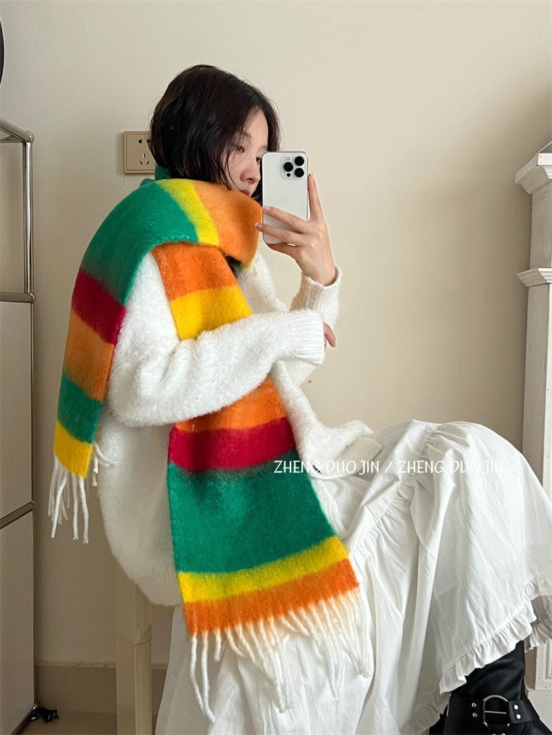 스카프의 큰 버전! 디자이너 열대 과일 색 모조 양모 두꺼운 스카프 = IAC 한국 무료 배송