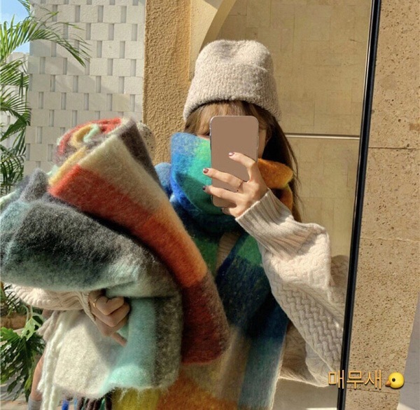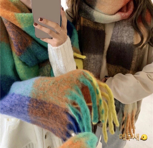 스카프의 큰 버전! 디자이너 열대 과일 색 모조 양모 두꺼운 스카프 = IAC 한국 무료 배송스토어 가기