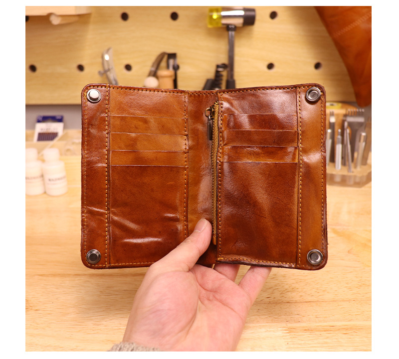수제 소 가죽 풀 가죽 대용량 지갑 남성 가방 수직 껍질 클러치 정품 가죽 지갑 카드 가방 남성과 여성스토어 가기