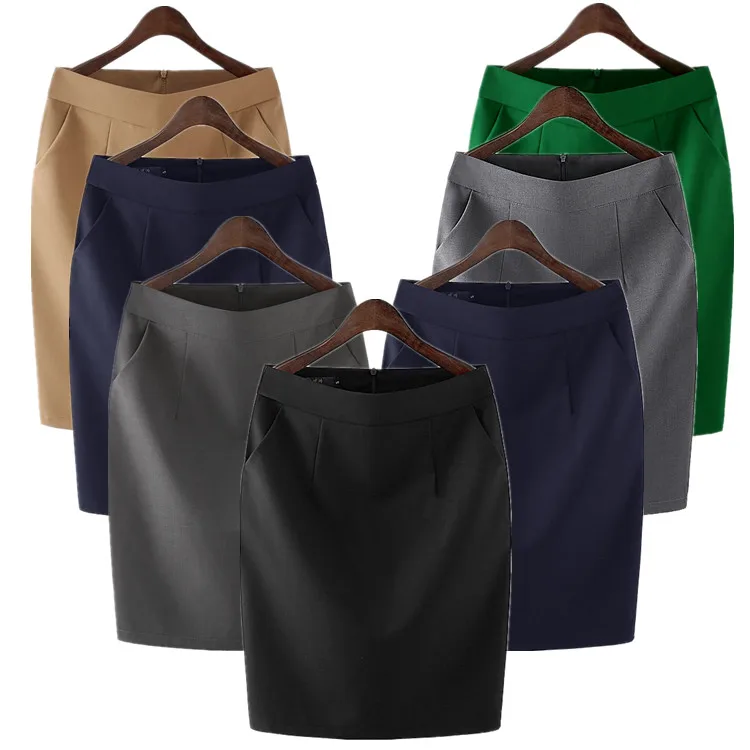 포켓이 있는 작업복 하이웨이스트 7사이즈 미니스커트 여성용 오피스룩 OL 11COLOR Bodycon 복합스토어 가기