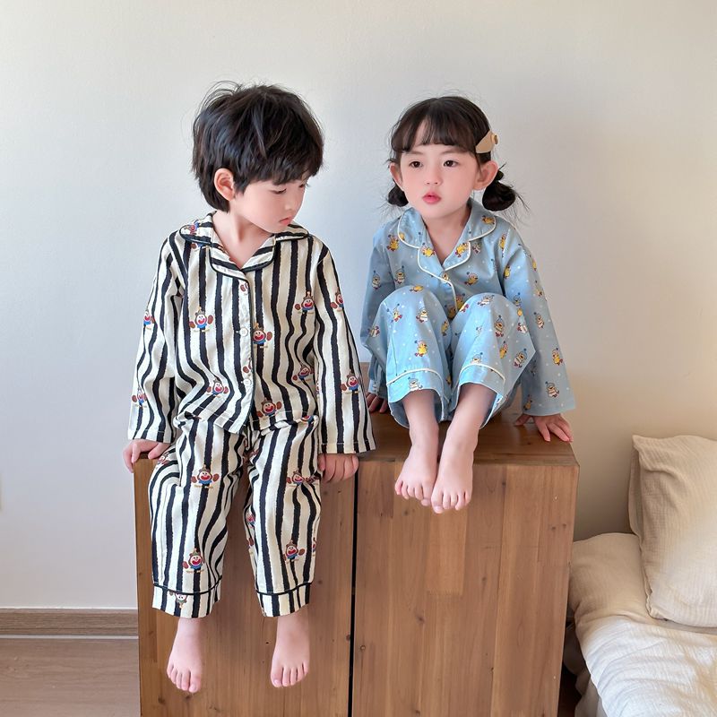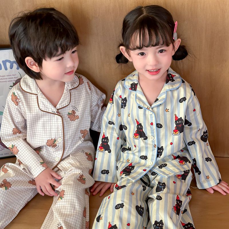 어린이 클래스 A 홈 의류 소년과 소녀 느슨한 잠옷 봄과 가을 100 면 긴 소매 바지 아기 카디건 세트