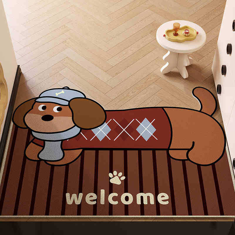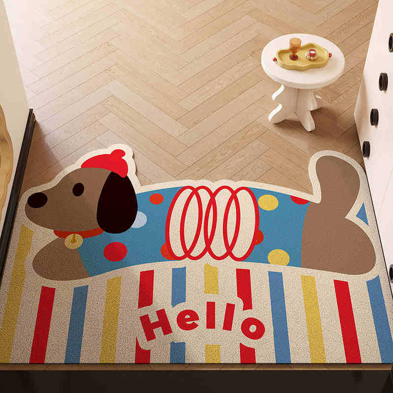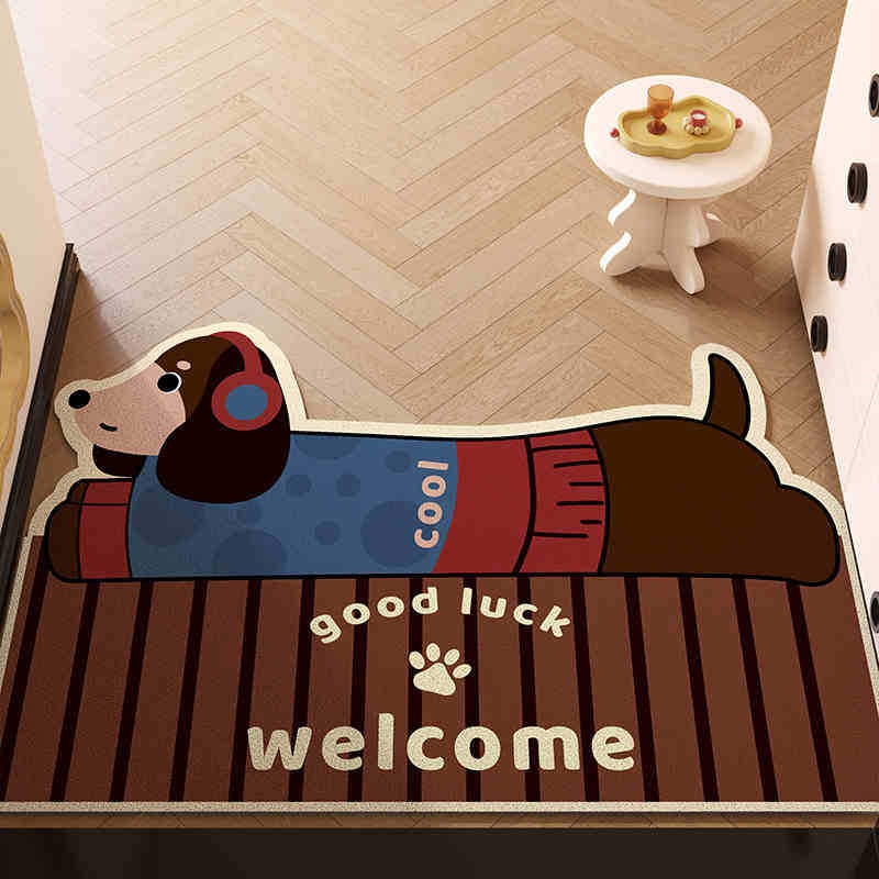 입구 바닥 매트 고급 만화 닥스 훈트 개 실크 링 미끄럼 방지 바닥 매트 입구 진흙 긁기 토양 맞춤형 바닥 매트스토어 가기