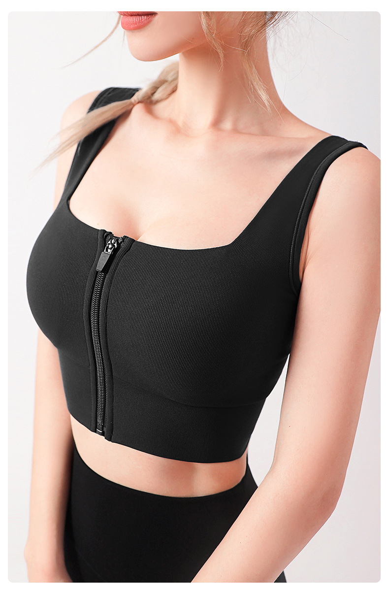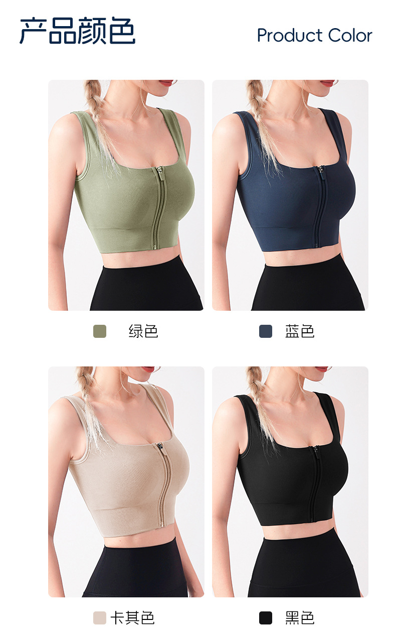 跨境前拉链瑜伽服背心女外穿美背健身文胸防震防下垂跑步运动内衣