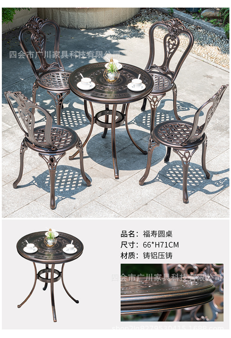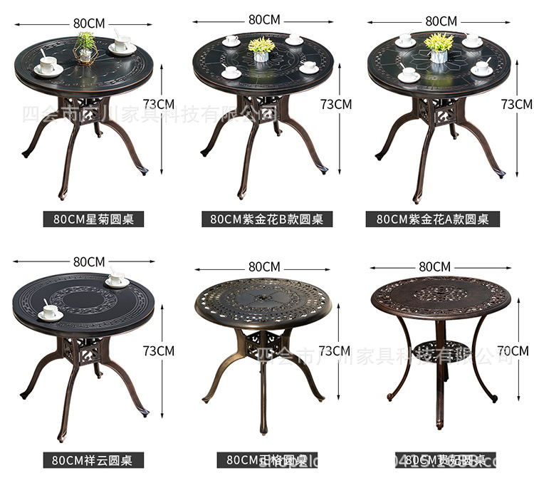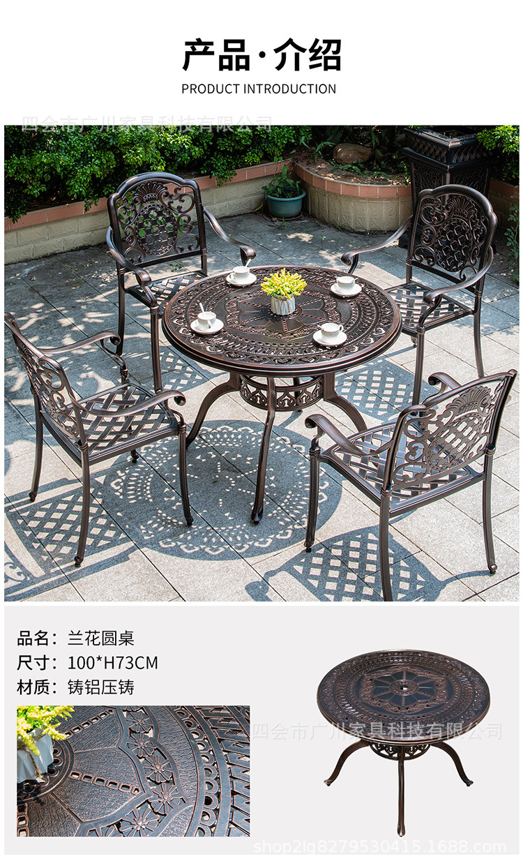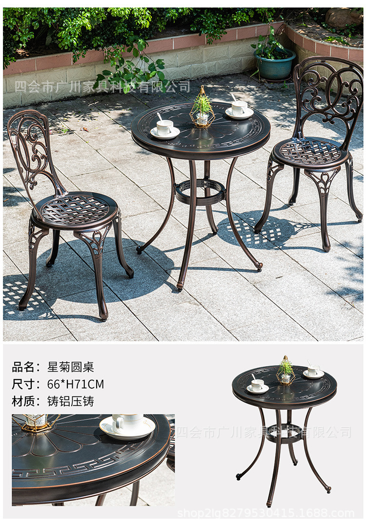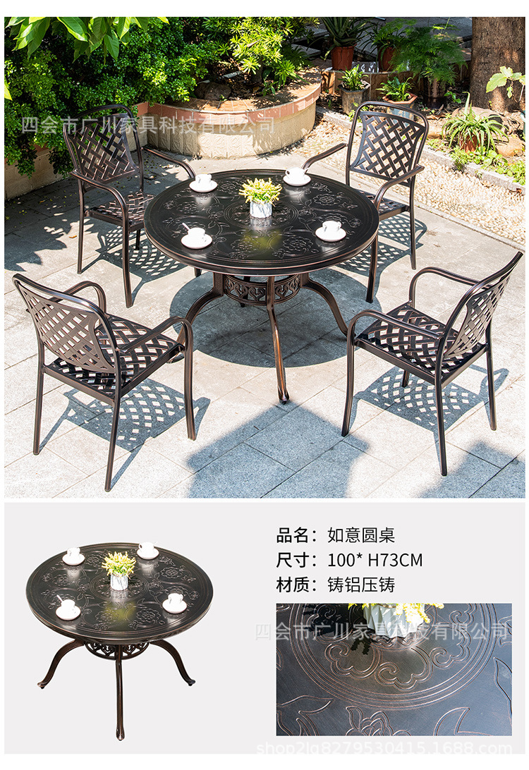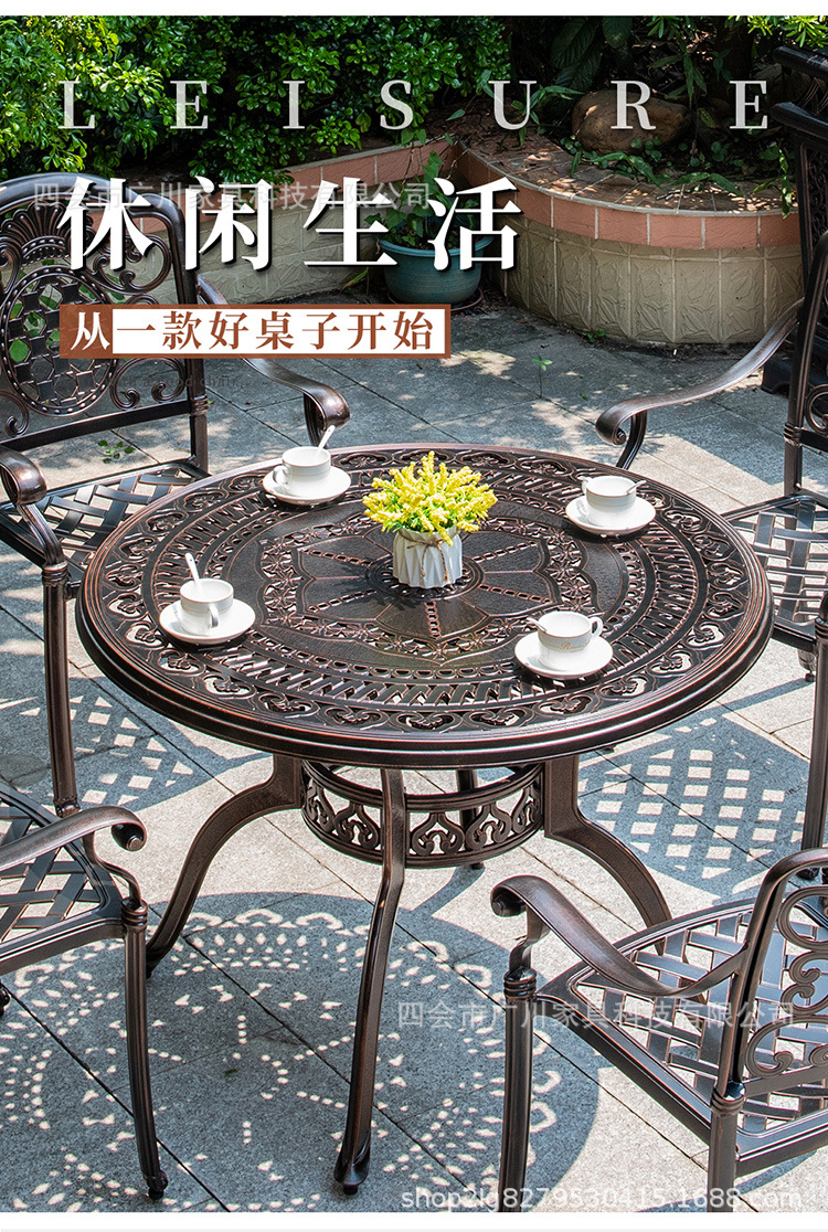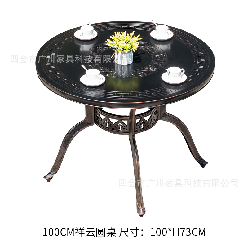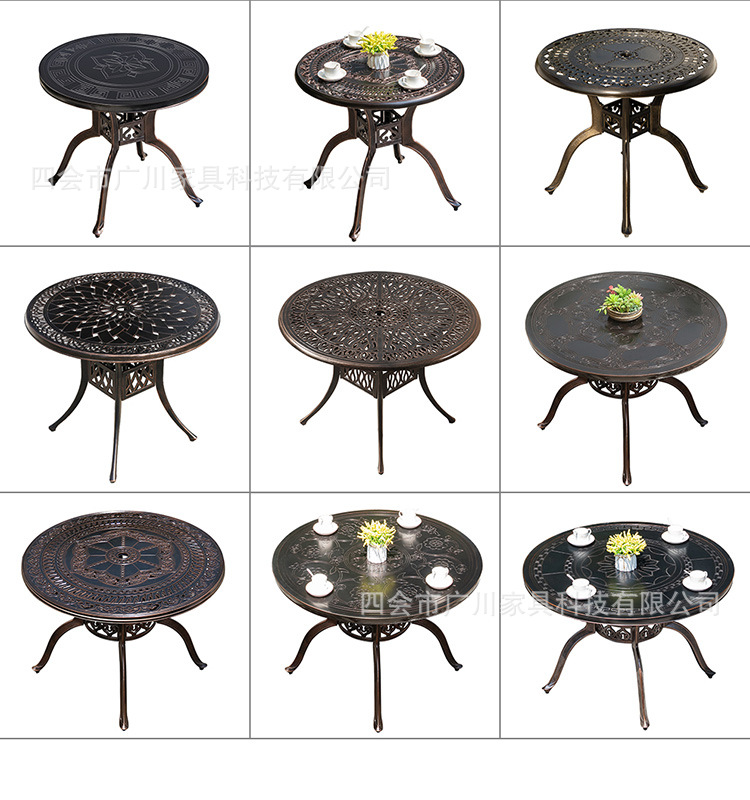 야외 단일 식탁 주조 알루미늄 방수 및 태양방지 금속 테이블 조각 주조 알루미늄 발코니 안뜰 정원 광장 원탁스토어 가기