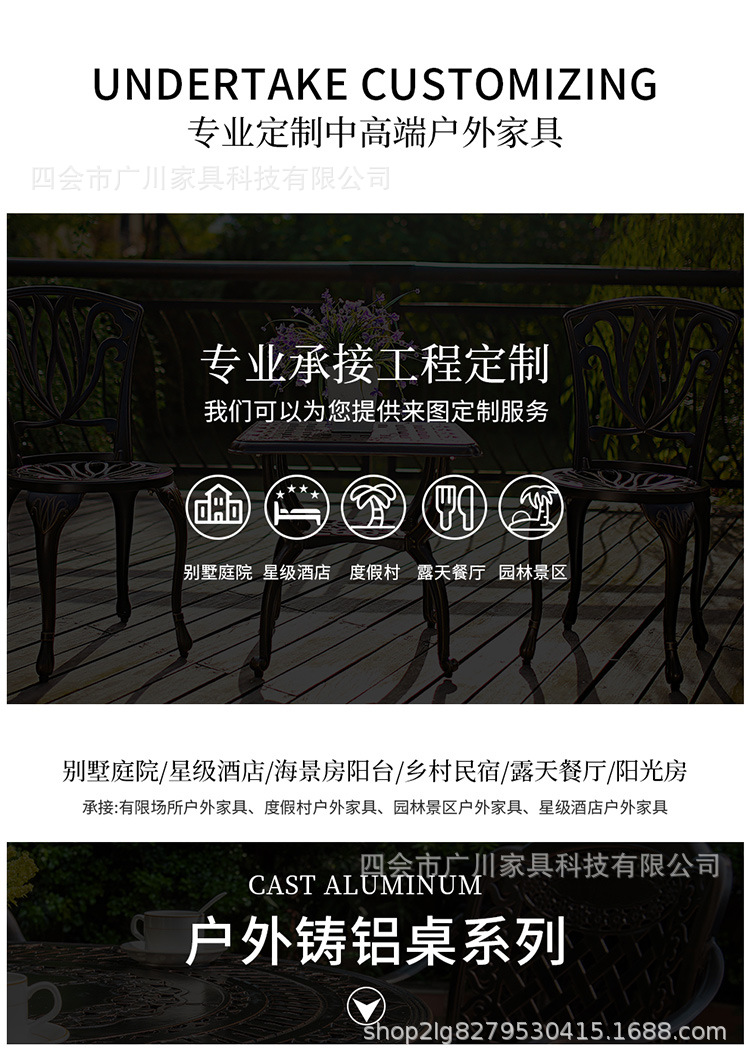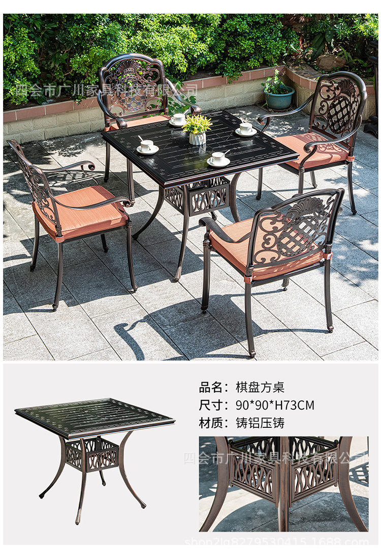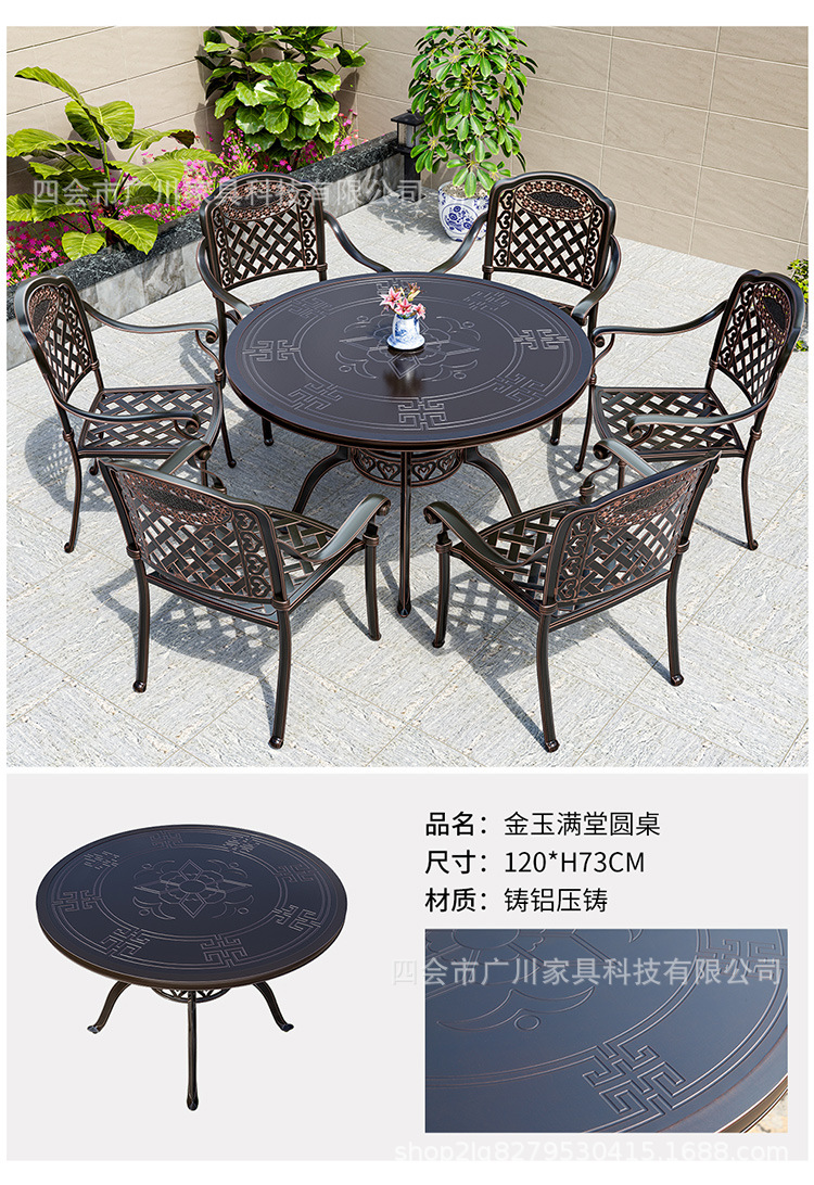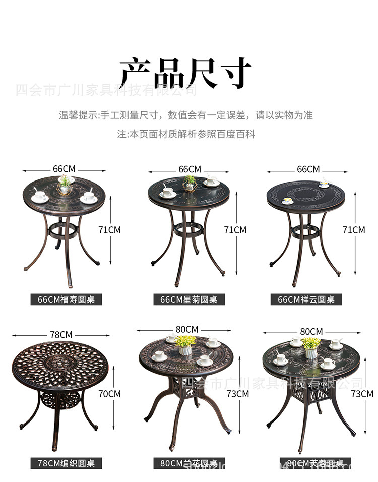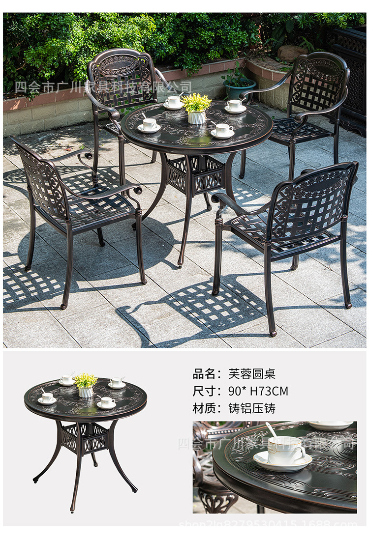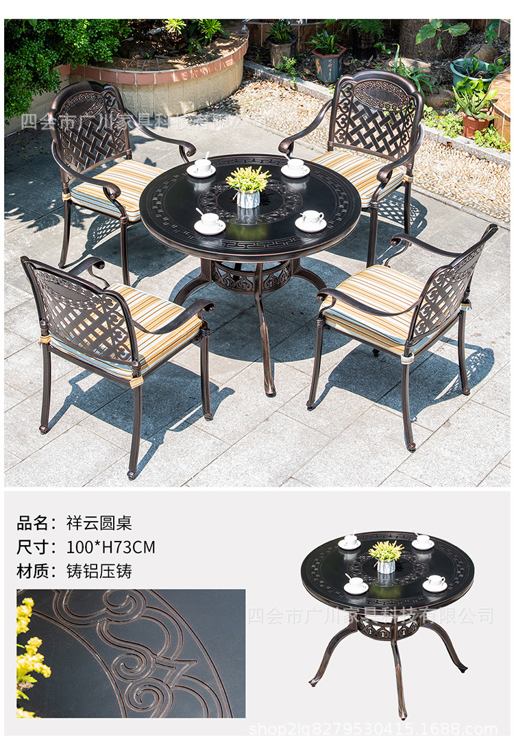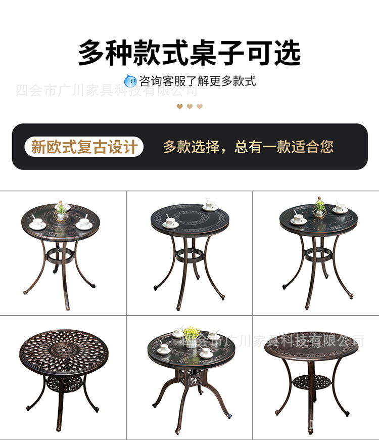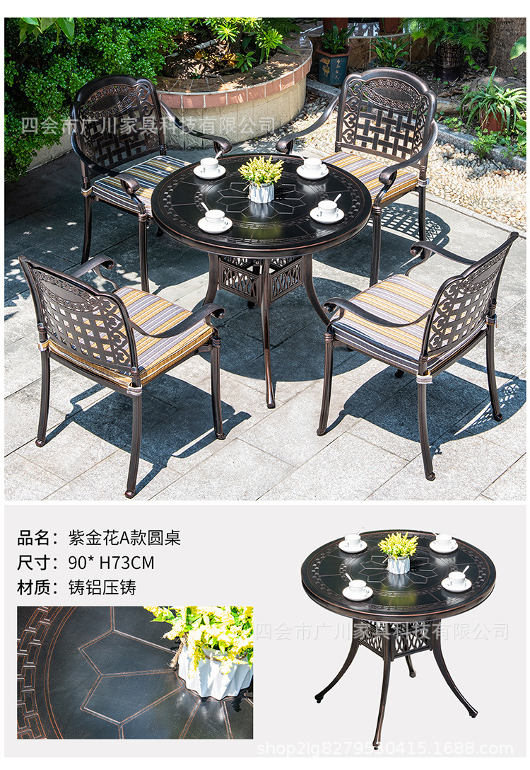 야외 단일 식탁 주조 알루미늄 방수 및 태양방지 금속 테이블 조각 주조 알루미늄 발코니 안뜰 정원 광장 원탁스토어 가기