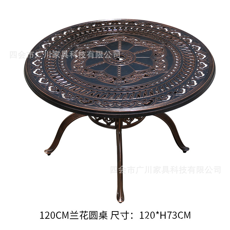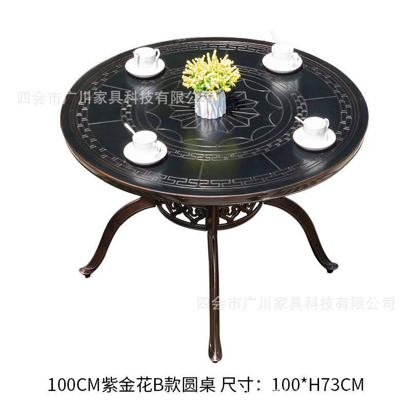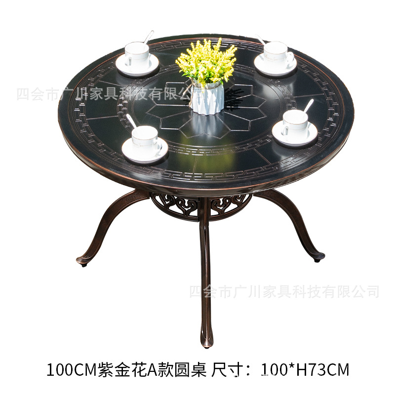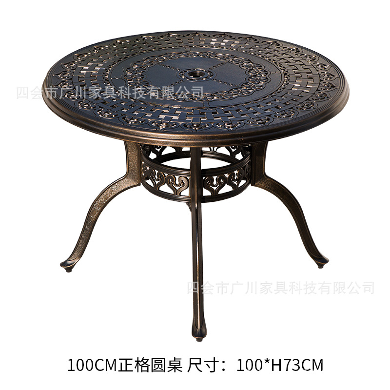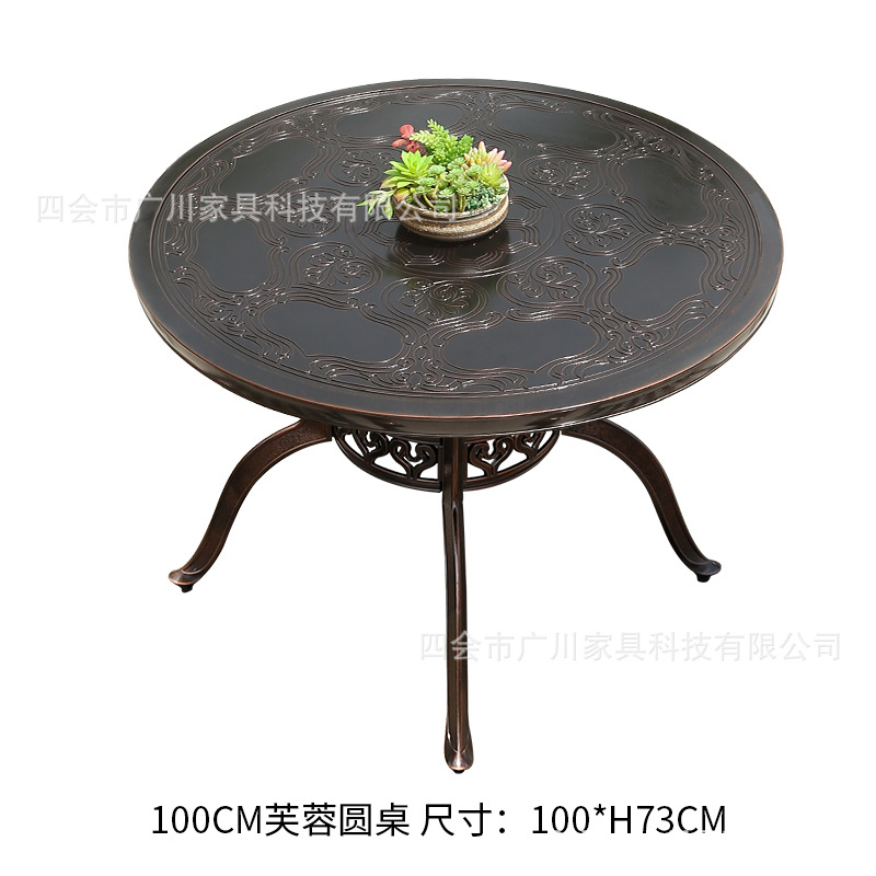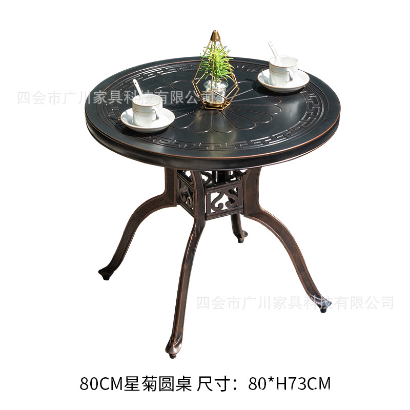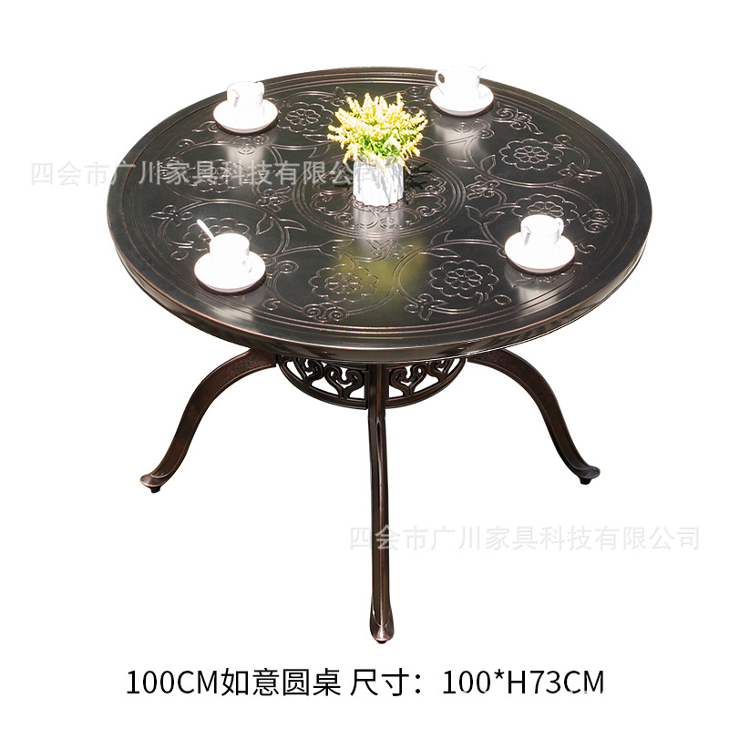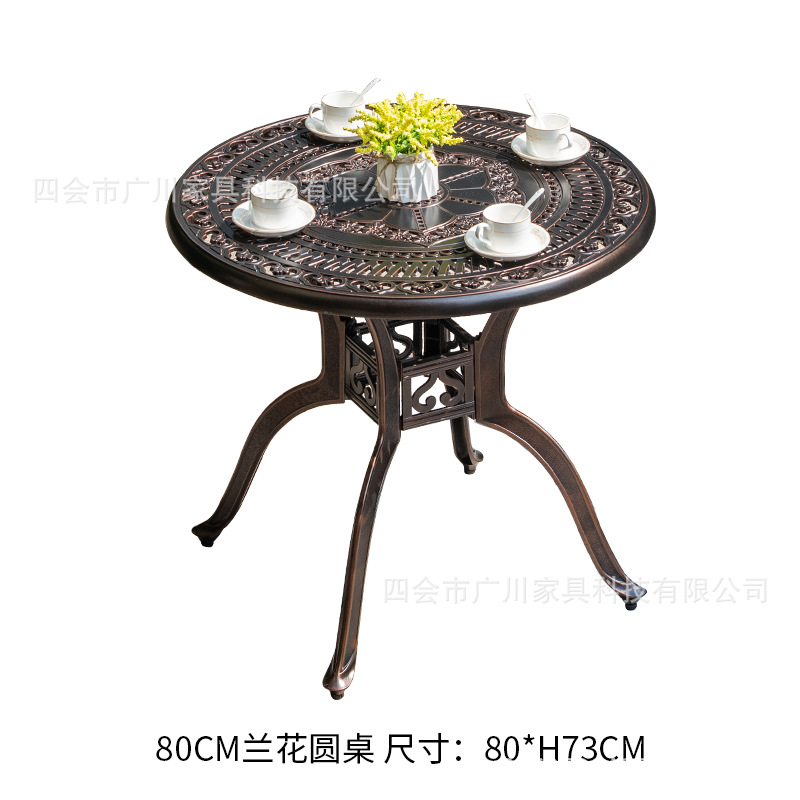 야외 단일 식탁 주조 알루미늄 방수 및 태양방지 금속 테이블 조각 주조 알루미늄 발코니 안뜰 정원 광장 원탁